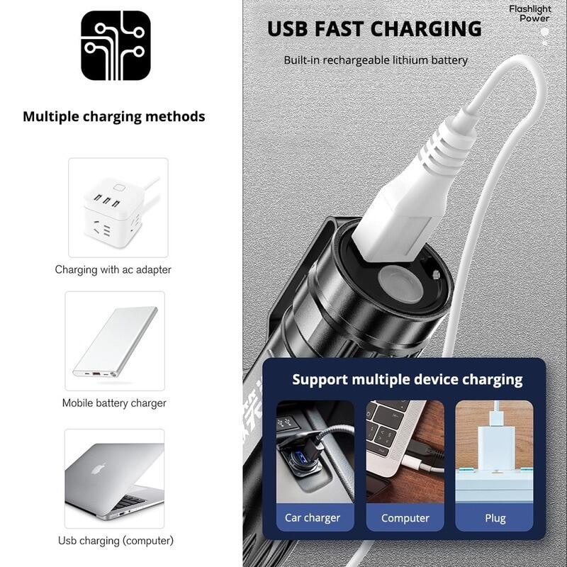 Powerful USB Rechargeable LED Flashlight G3 wick Strong light LED Torch ABS Lightweight Waterproof torchlight for Adventure Camping Riding Hiking