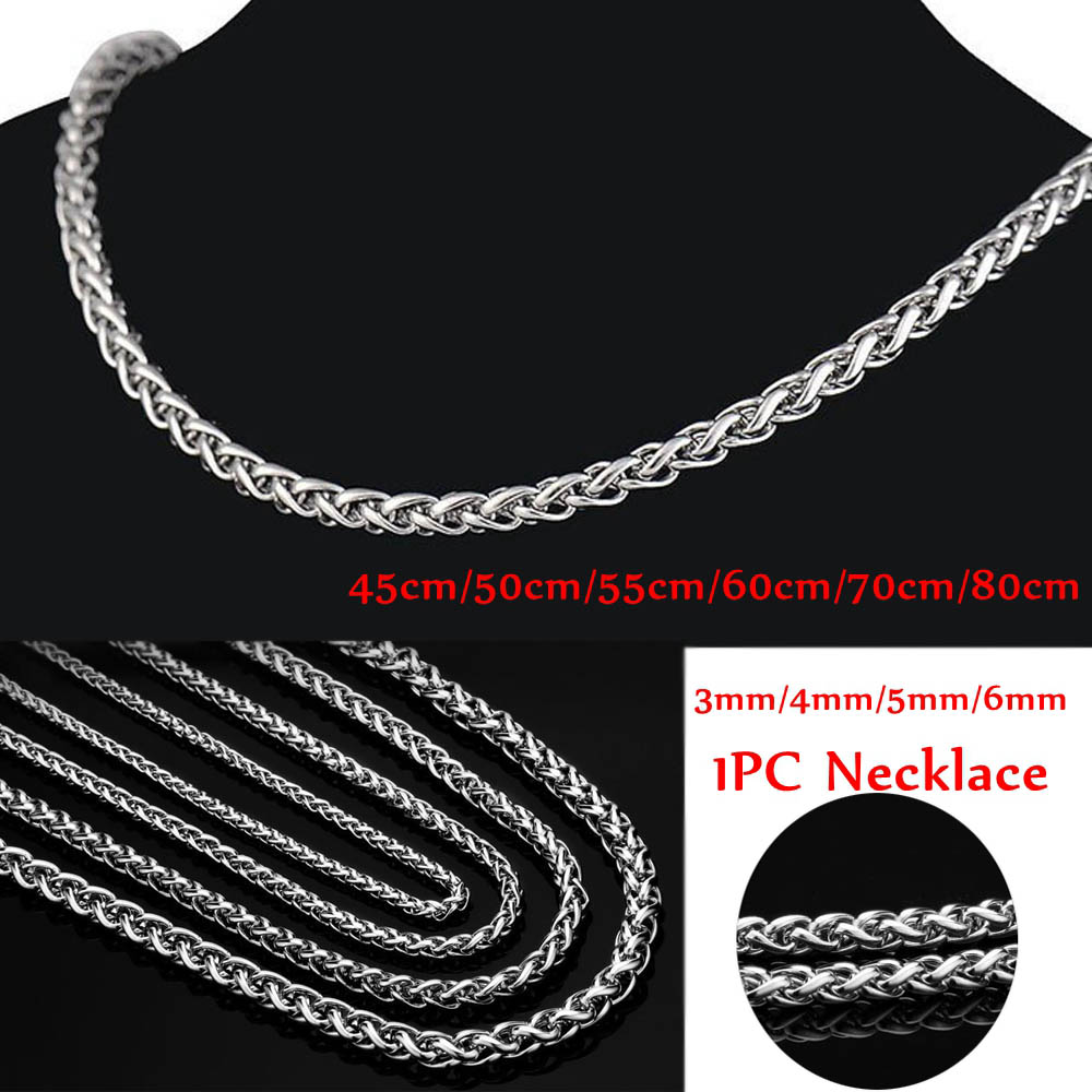 3/4/5/6MM Silver Braided Wheat Chain 316L Stainless Steel Necklace Mens Link 18"-32"