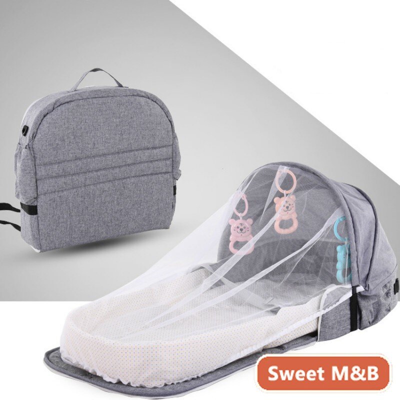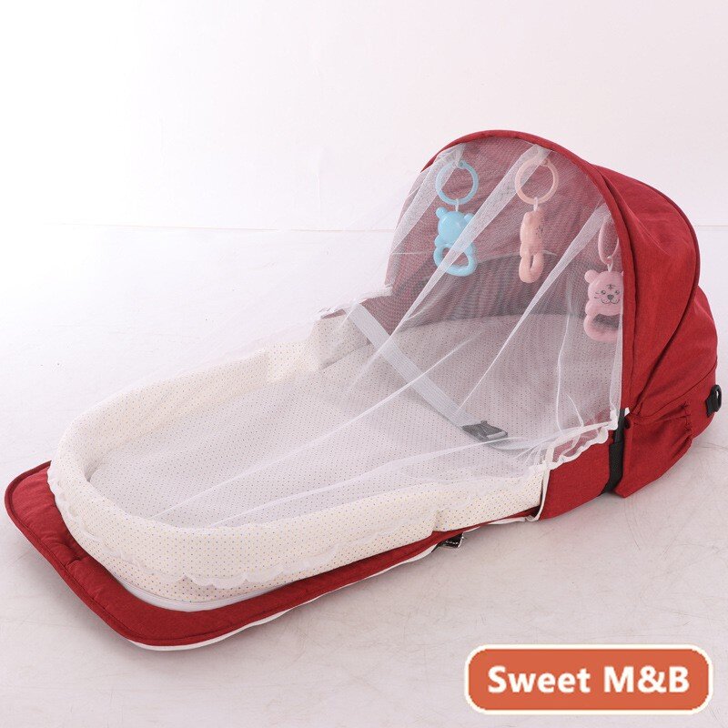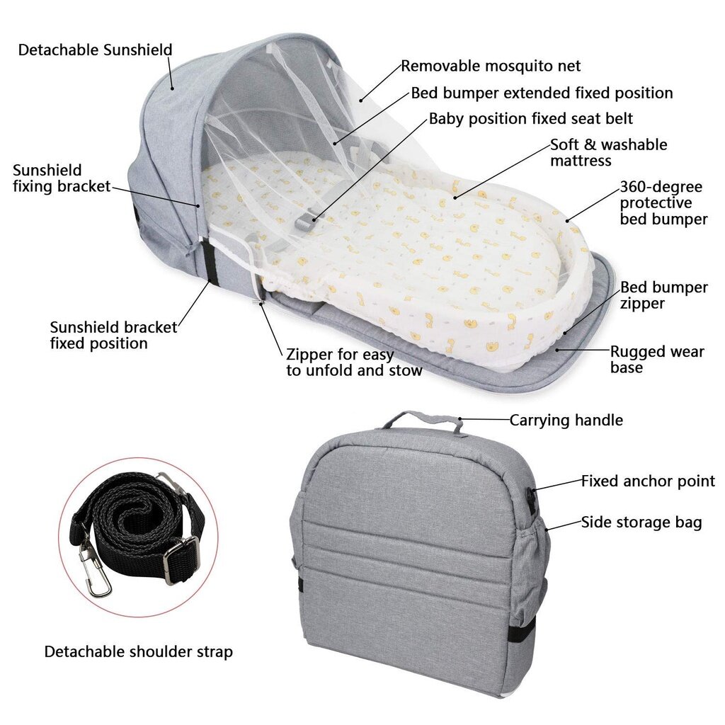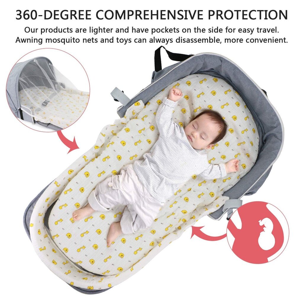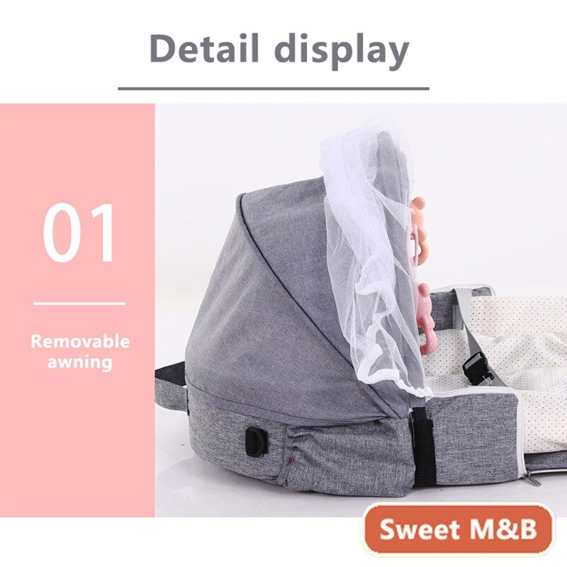 4 In 1 Portable Bassinet Mummy Bag, Foldable Baby Bed, Infant Sleeper with Awning and Mosquito Net for Baby Go Out, Newborn Baby Travel Crib