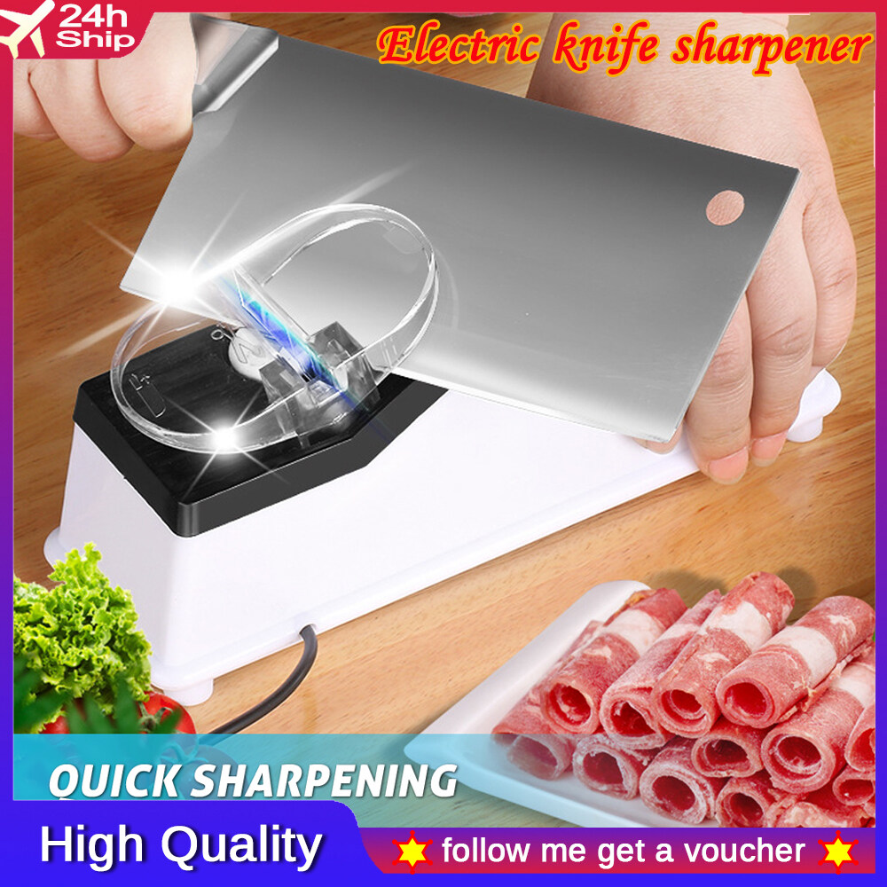 • Are you tired and frustrated with dull knives? Our electric knife sharpener is what you need to help you slove your problems. With high-quality white corundum wheel, it's designed to sharpen different kinds of knives and meet different needs. A perfect helper for your kitchen!