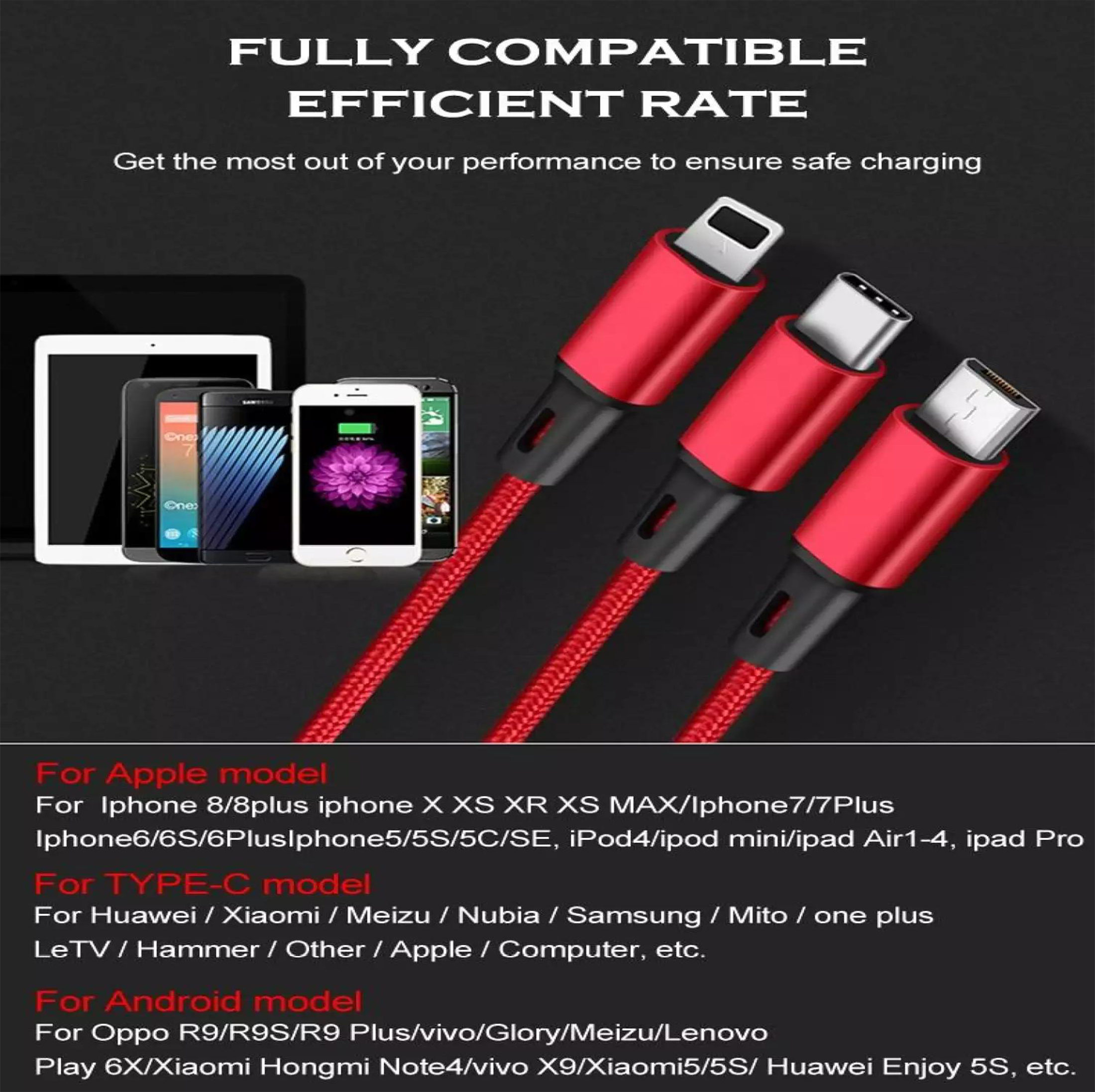 【3in1】 3A Quick Charging Usb C Cable Micro Usb/Type-C/Lightning Fast Charging Cord Super Fast Charger For IPhone12/11Pro max/XR/7/8Plus Xiaomi OPPO Samsung HuaWei Mate 20 30 Pro……