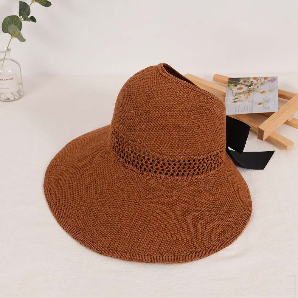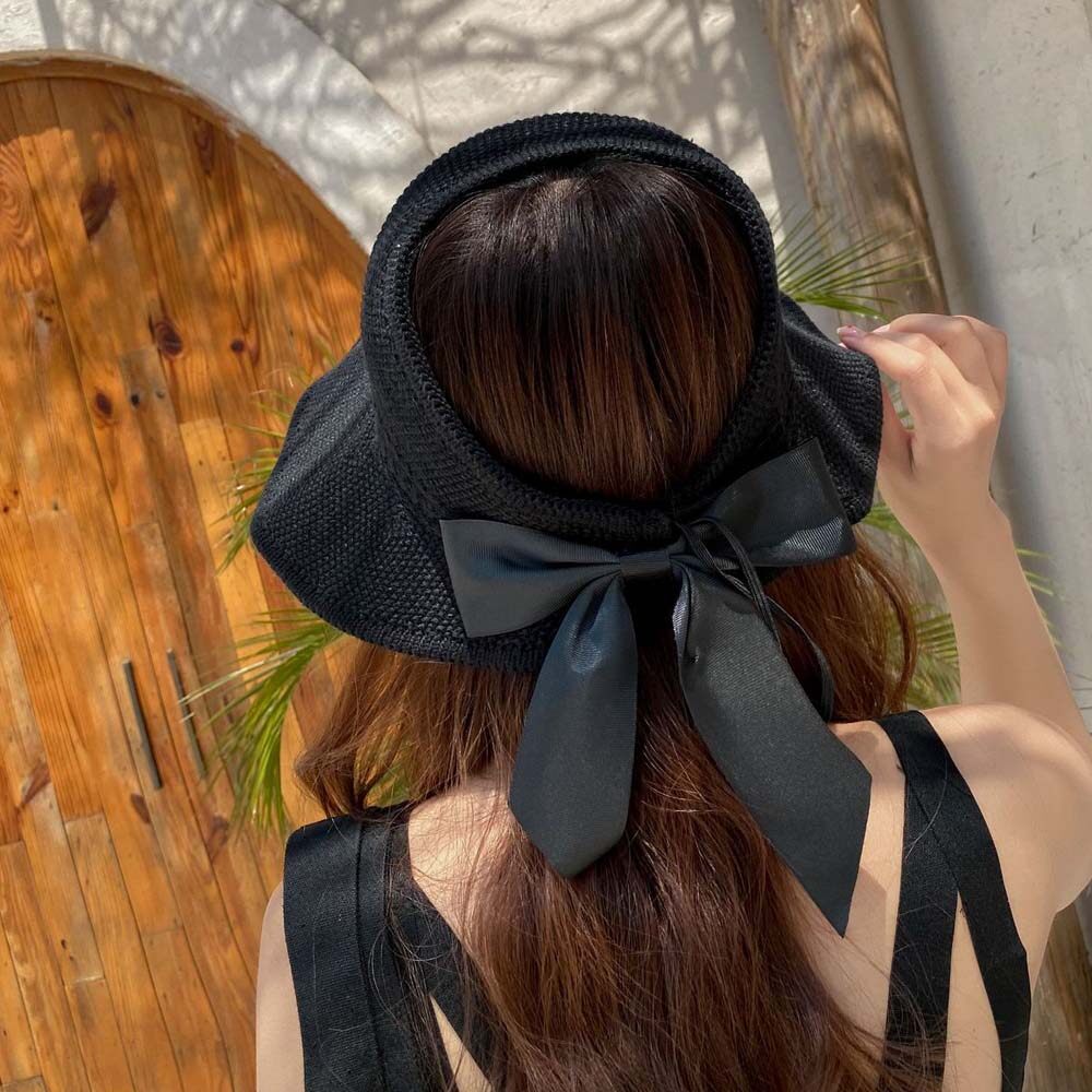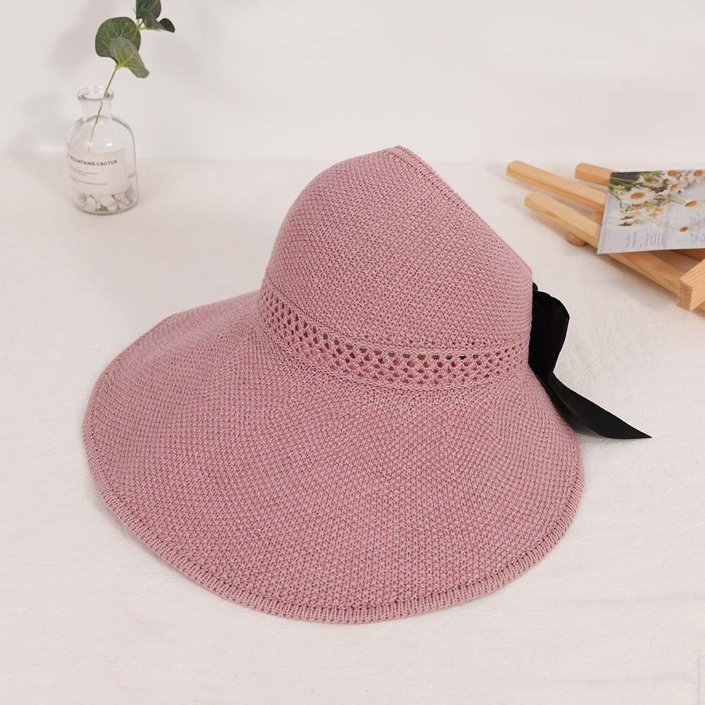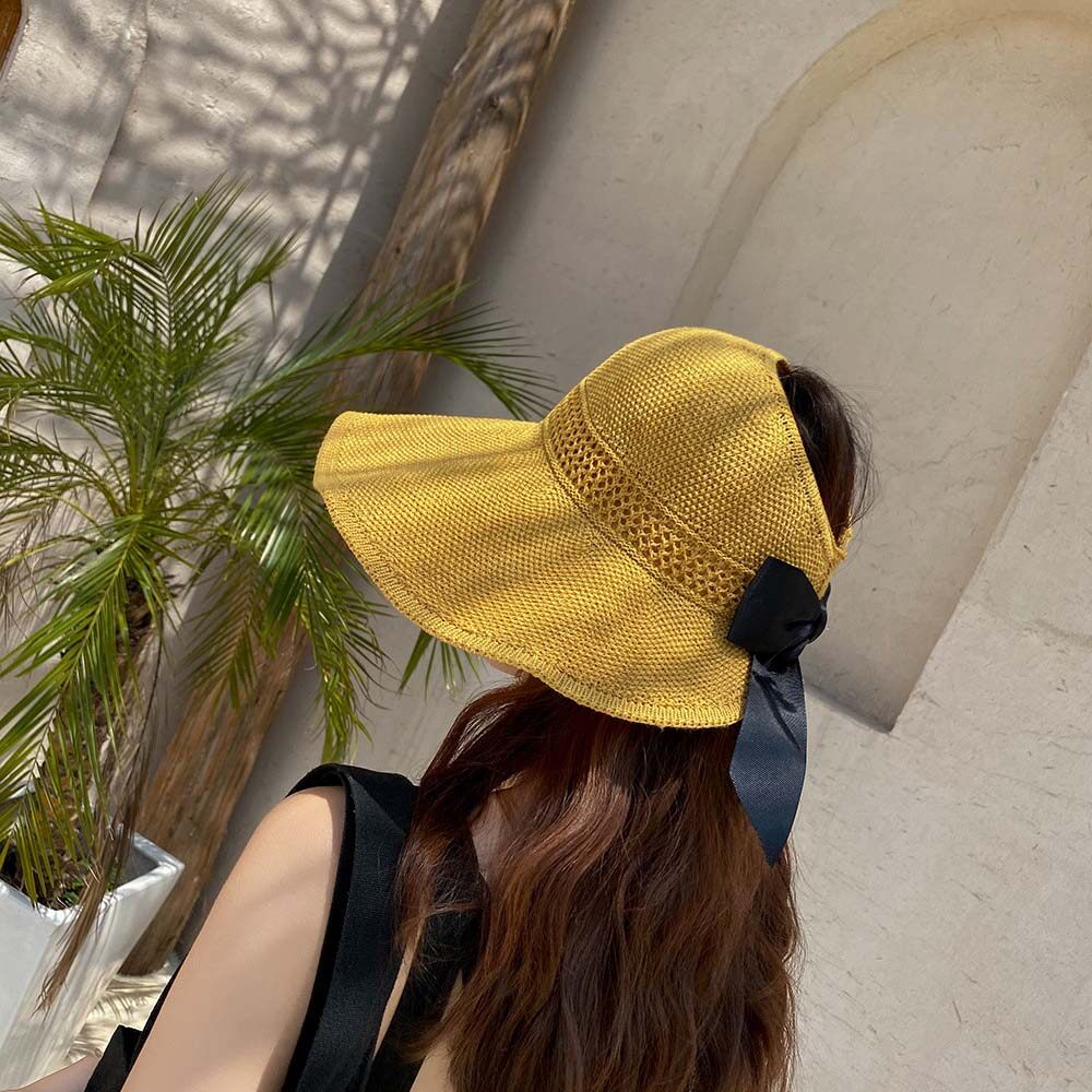 TKNUS Woman Foldable Handmade Sun Visor Sunscreen Holiday Straw Hat Bowknot Sun Cap Empty Top Hat