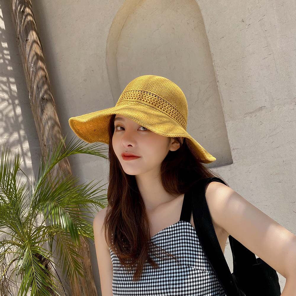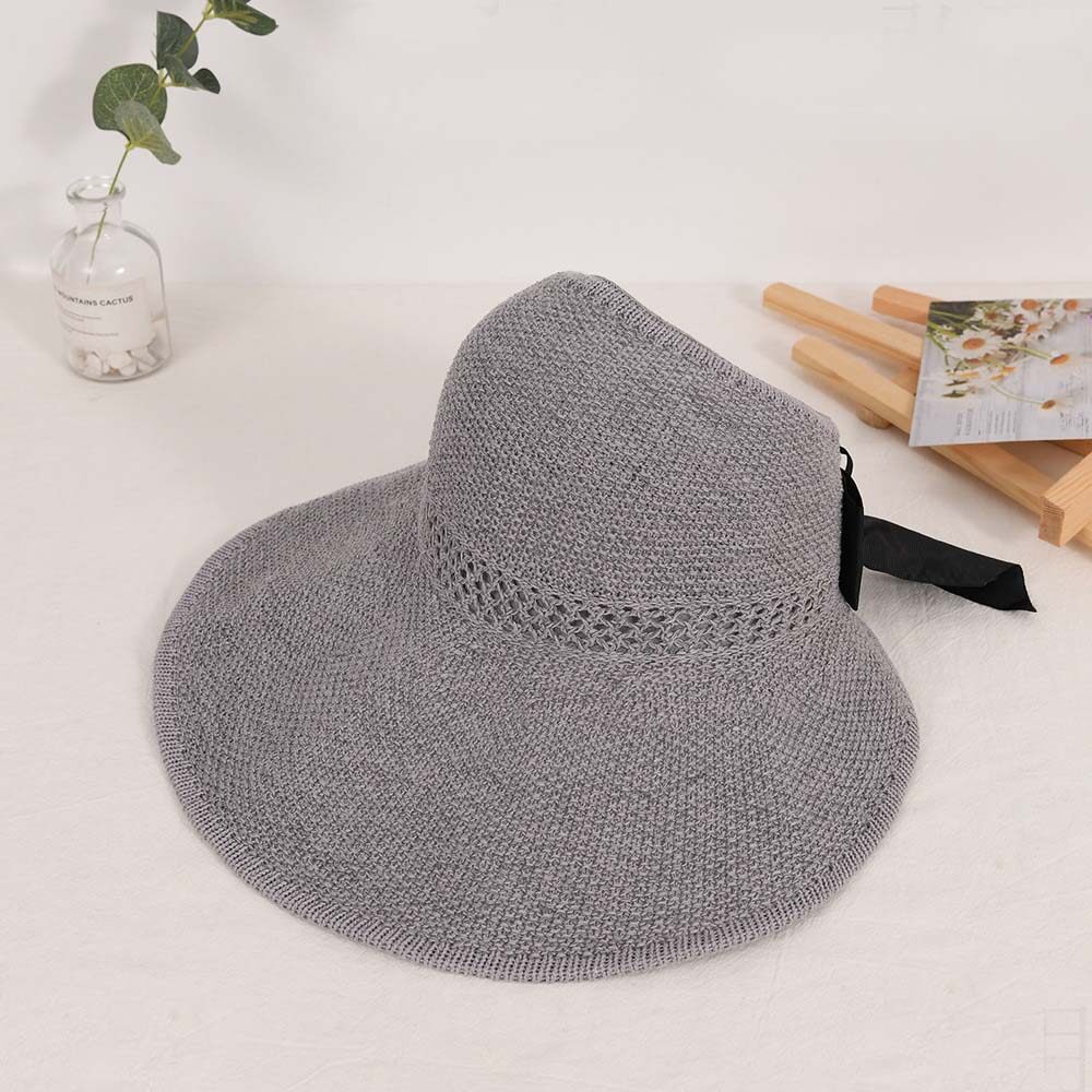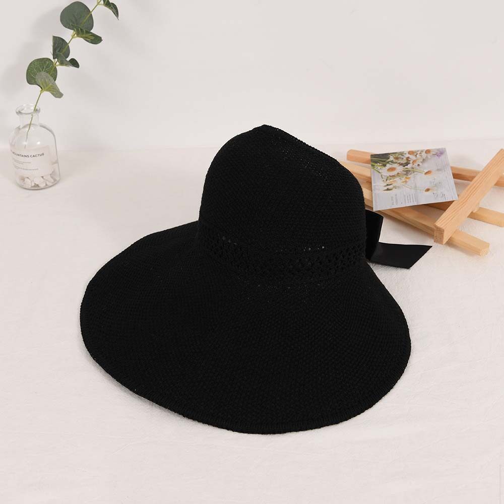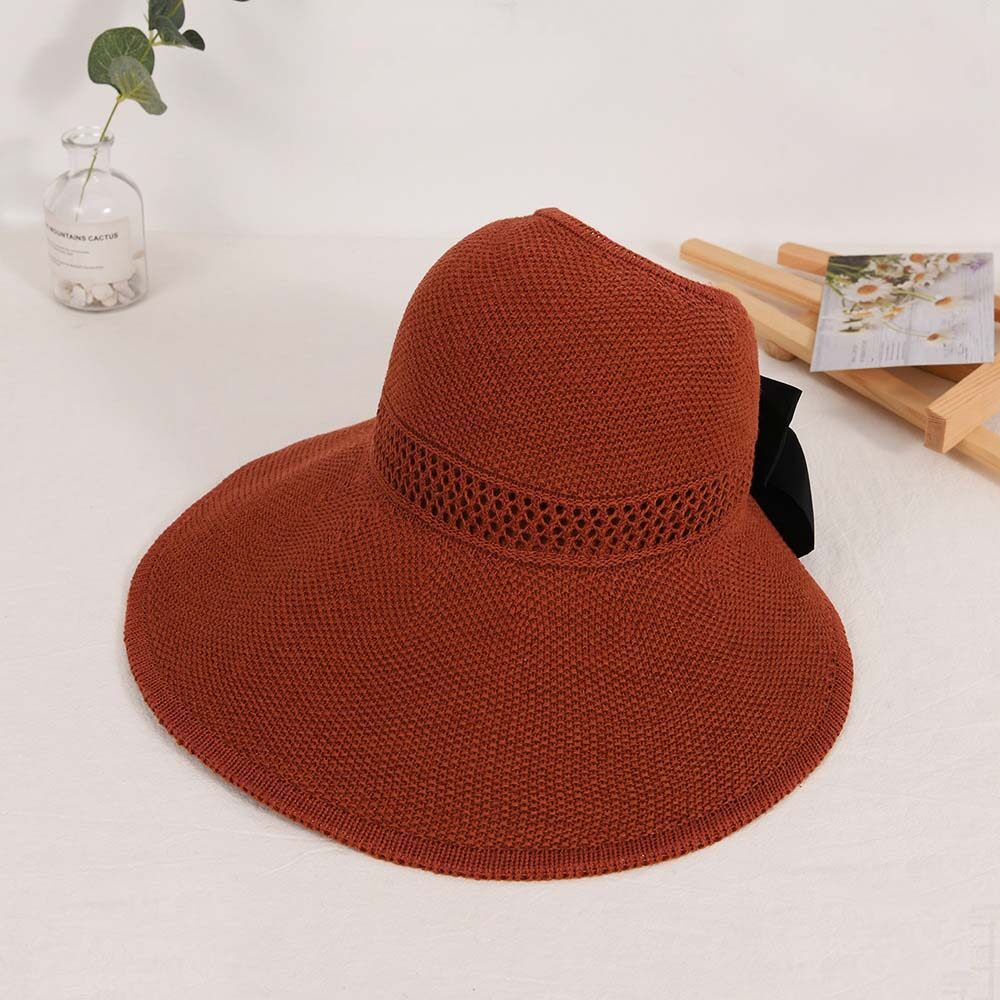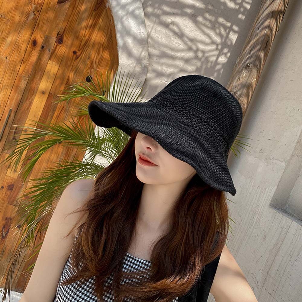 TKNUS Woman Foldable Handmade Sun Visor Sunscreen Holiday Straw Hat Bowknot Sun Cap Empty Top Hat