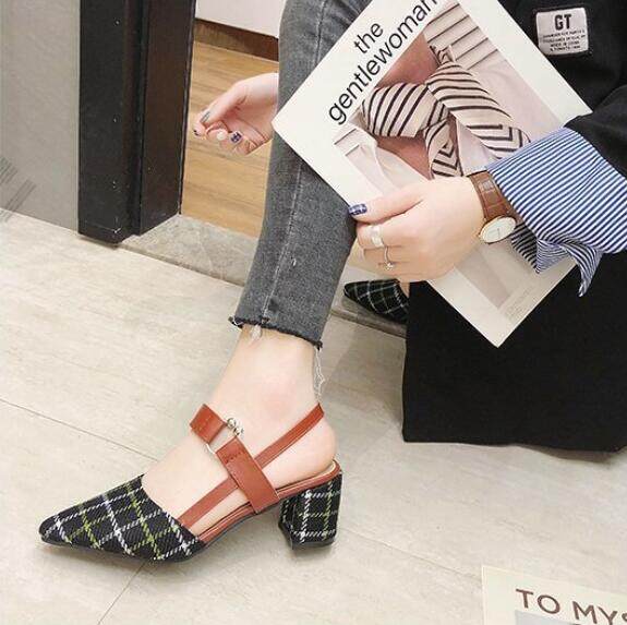 Thick-heeled Baotou High-heeled Sandals Shoes Pointed Mary Jane Women's Shoes