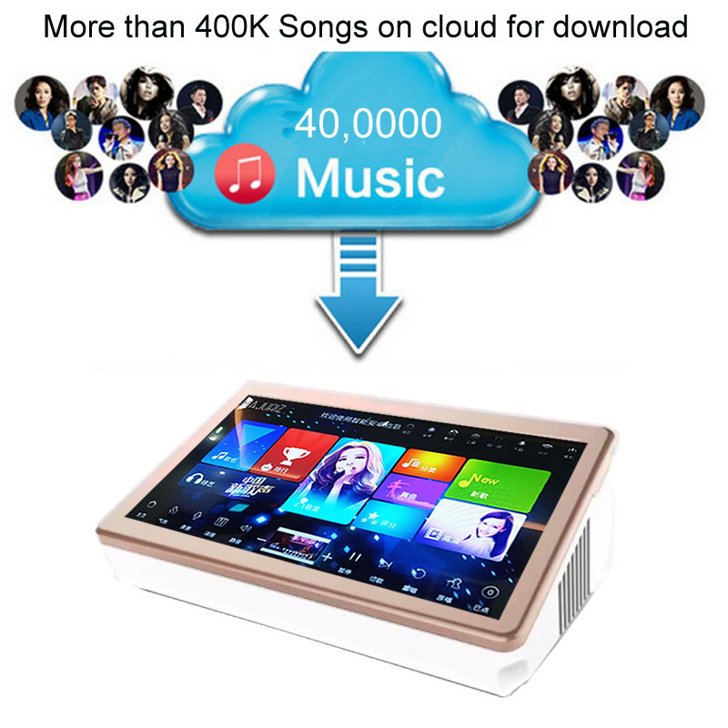 2.Download songs from cloud .There  are more than 400K different language songs(Mandarin,Cantonese,Taiwanese,Vietnamese,English,Korean,Japanese,Thai,Burmese,Malay,Filipino,Spanish,etc. More than 10 kinds of songs on cloud ) on Cloud for download.The system updates songs each every week.It will hint Synchronize new updates cloud songs if there are new songs.