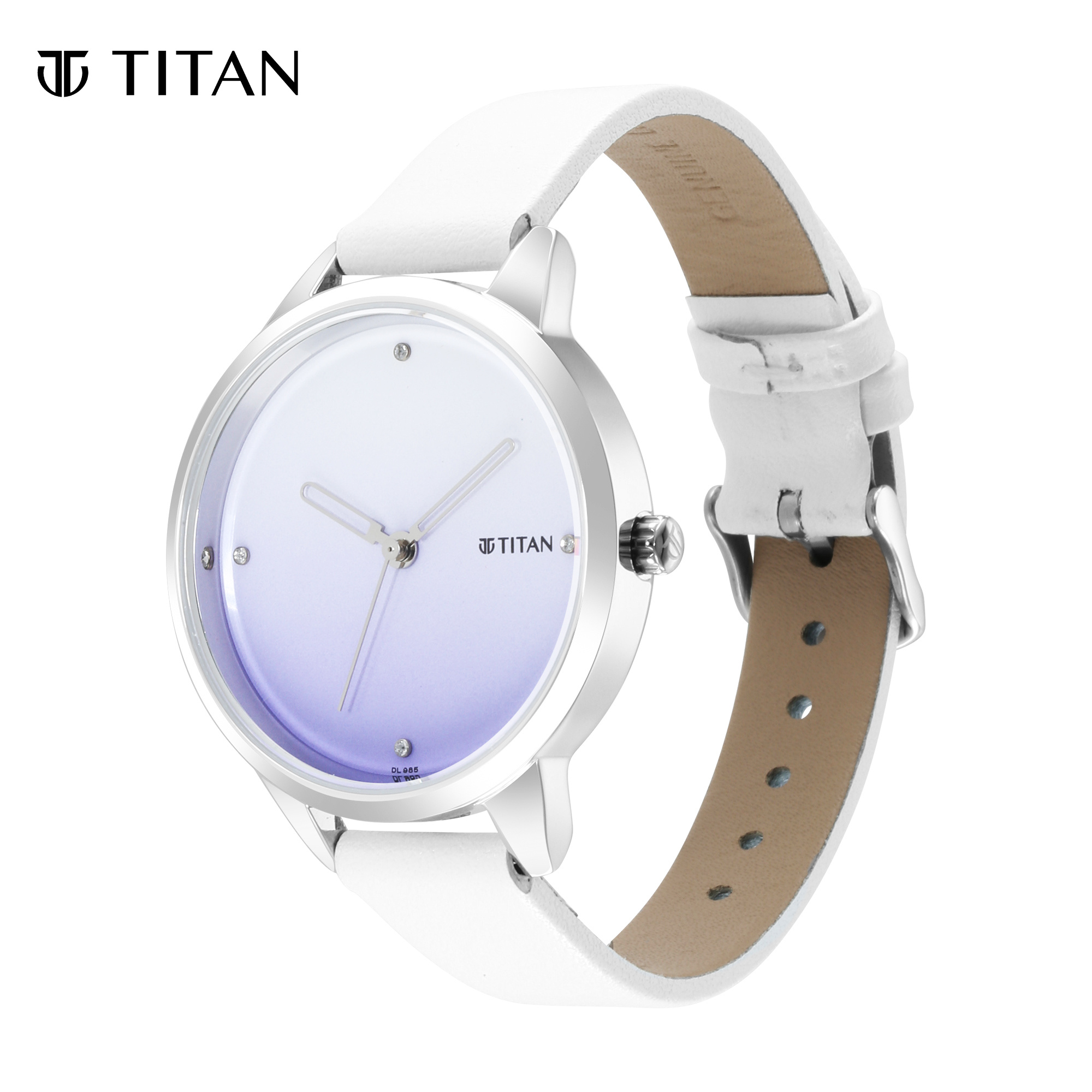 Titan Pastel Dreams Purple Dial White Leather Strap Women's Watch 2664SL03