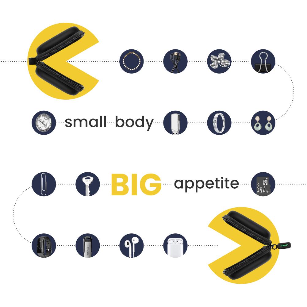 UGREEN Zipper Earphones Earbuds Carrying Bag Case Memory Card USB Cable Waterproof Organizer