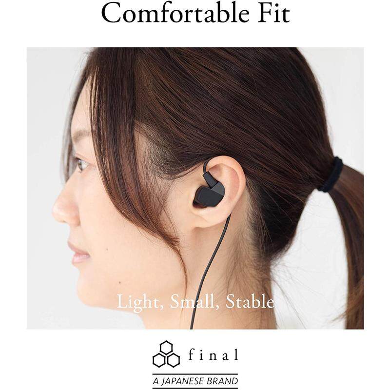 Earhooks (with locking mechanism) to eliminate cable touch noise.