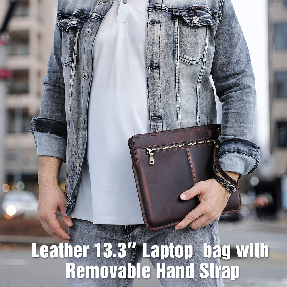 Genuine Leather Laptop Sleeve Case 13 14 15 16 Inch For Macbook Air/Pro Lenovo Asus Acer Dell HP Notebook Carrying Bag
