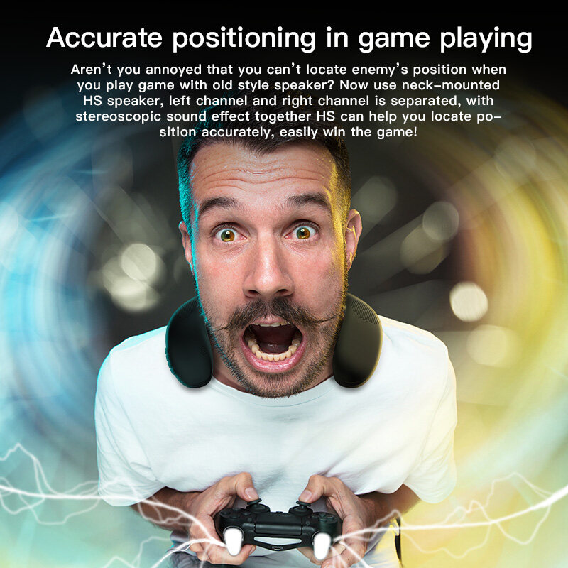 HS wireless neck speaker column Bluetooth-compatible speaker with bass FM radio SD-card slot with mic for game
