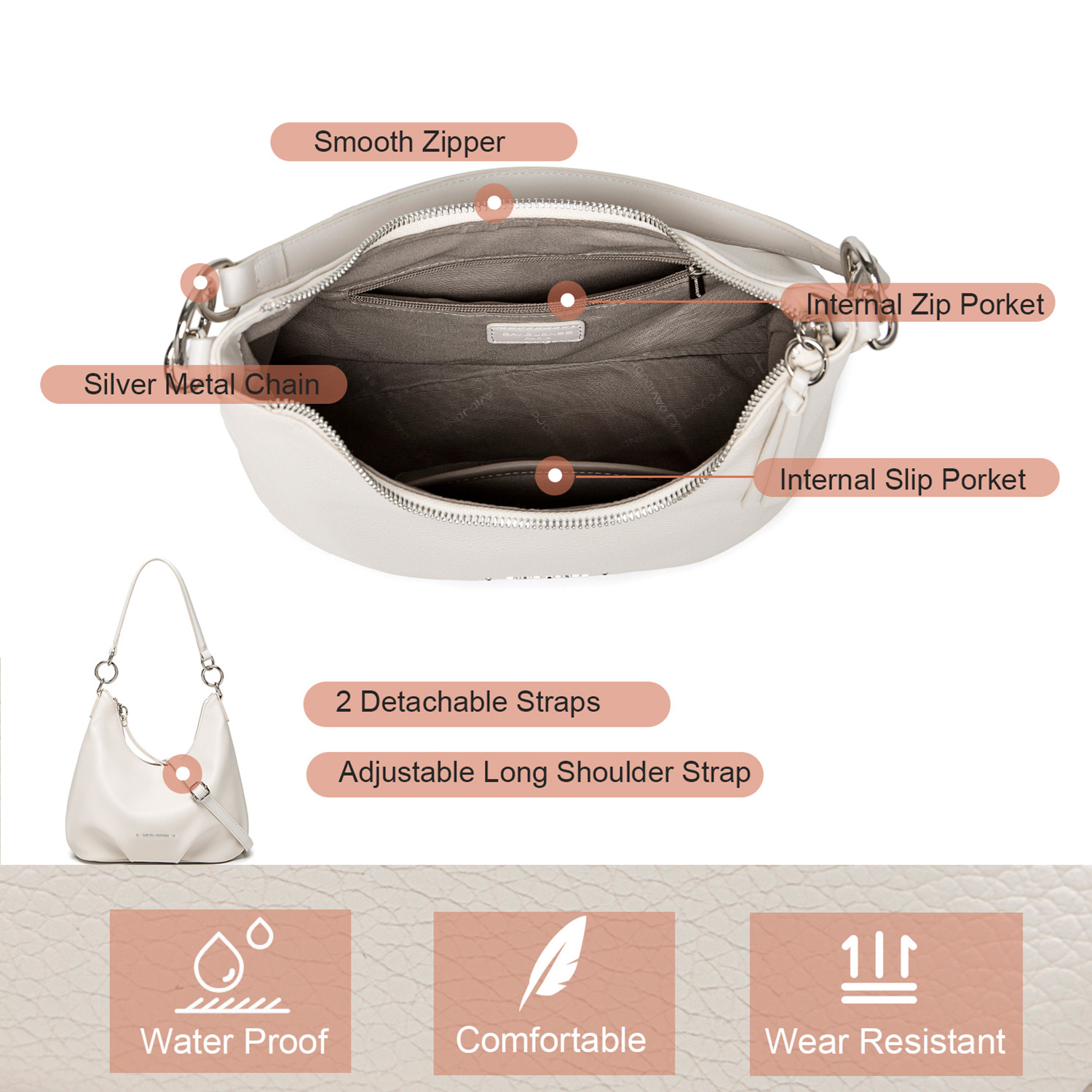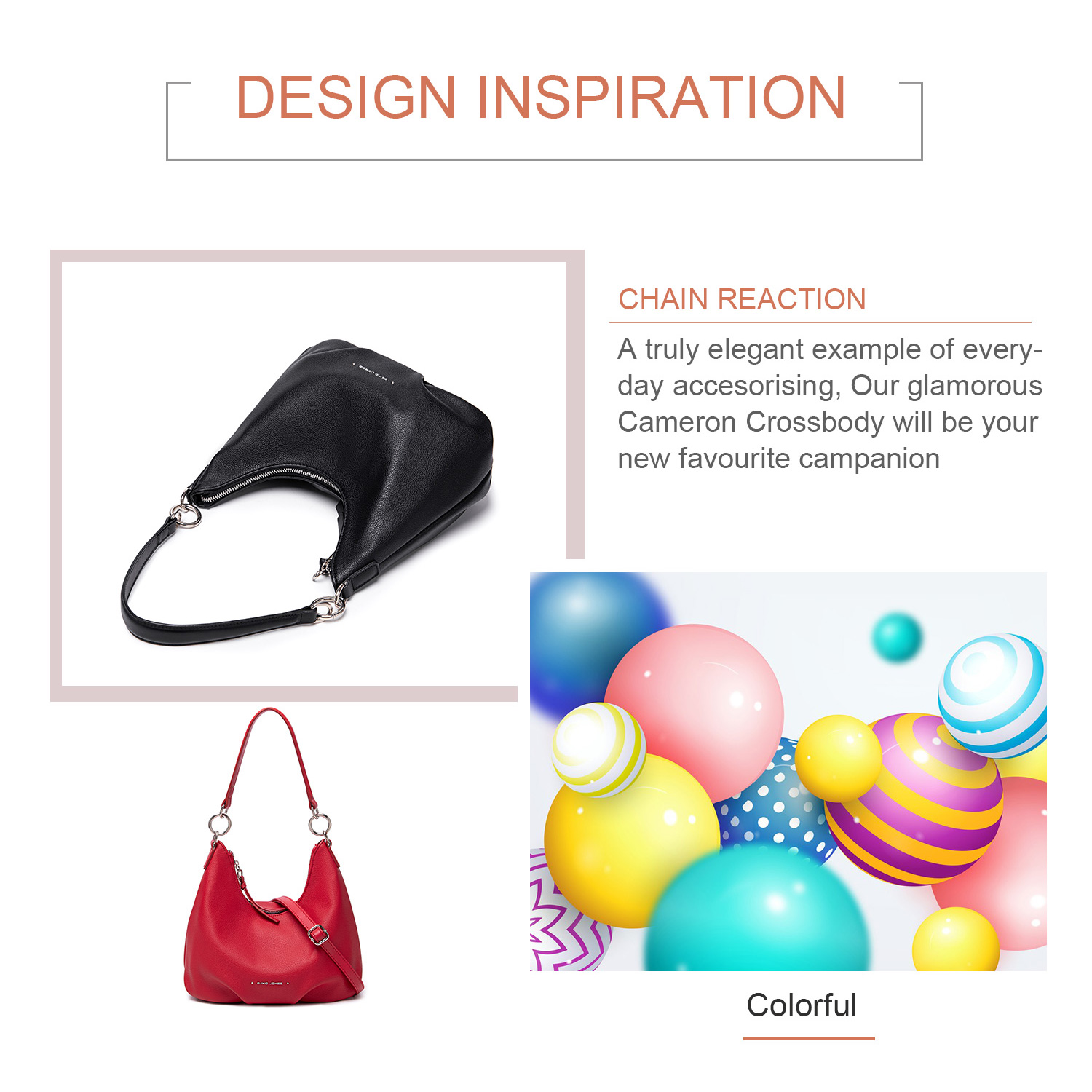 • Product feature:1 main zipper compartment;1 internal slip pocket; 1 internal zip pocket;1 zipper pocket on the back;1 fixed short shoulder strap and 1 adjustable long shoulder strap