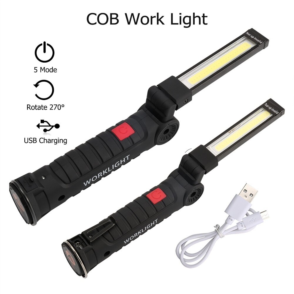 A-Mio Handheld 5 Mode COB Flashlight Cordless Rechargeable Magnetic LED Torch Flexible Inspection Lamp Work Light for Outdoor Camping Car Truck