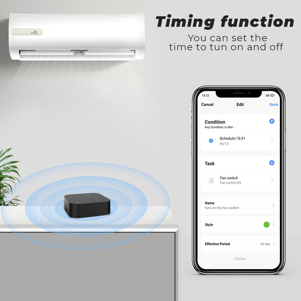 2.The Smart IR Remote can control multiple infrared remote control home appliances, the APP does not limit the specific number, Recommended range within 10m