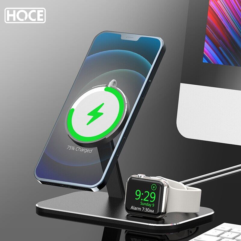 HOCE 2 in 1 MagSafe Phone Charger Holder Magnetic Desktop Wireless Charger Stand For iPhone 12 13 Pro Max iWatch Aluminum Fast Charger Support
