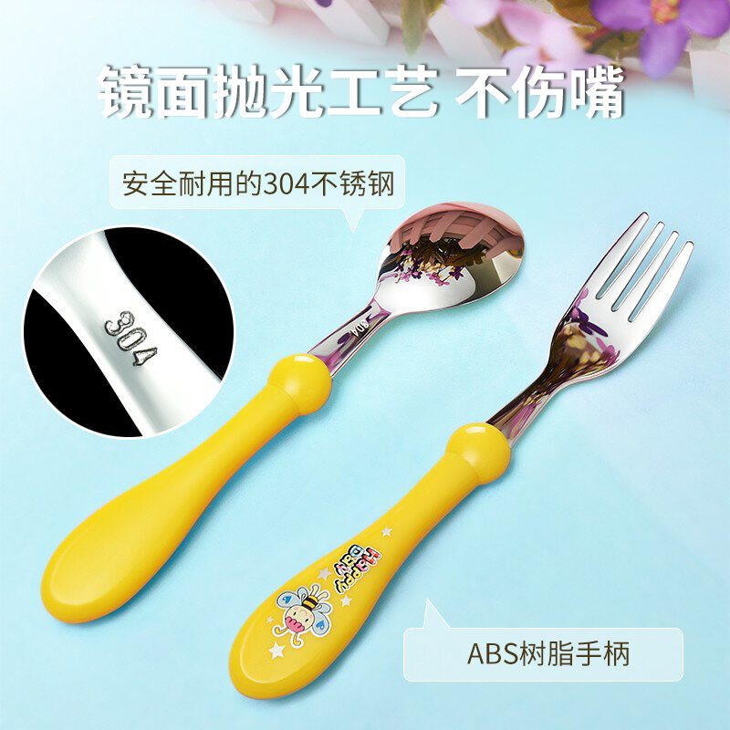 YH4F 3pcs Outdoor Travel Spoon Wooden Handle Stainless Steel Fork Utensils Tableware Flatware Set Cutlery Set