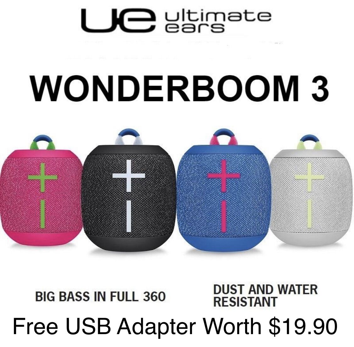 ULTIMATE EARS WONDERBOOM 3 Ultra portable Bluetooth speaker with a surprisingly bigger 360-degree stereo sound that’s crisp, bassy, and ready to go with 14 hours of boom — anywhere you go.