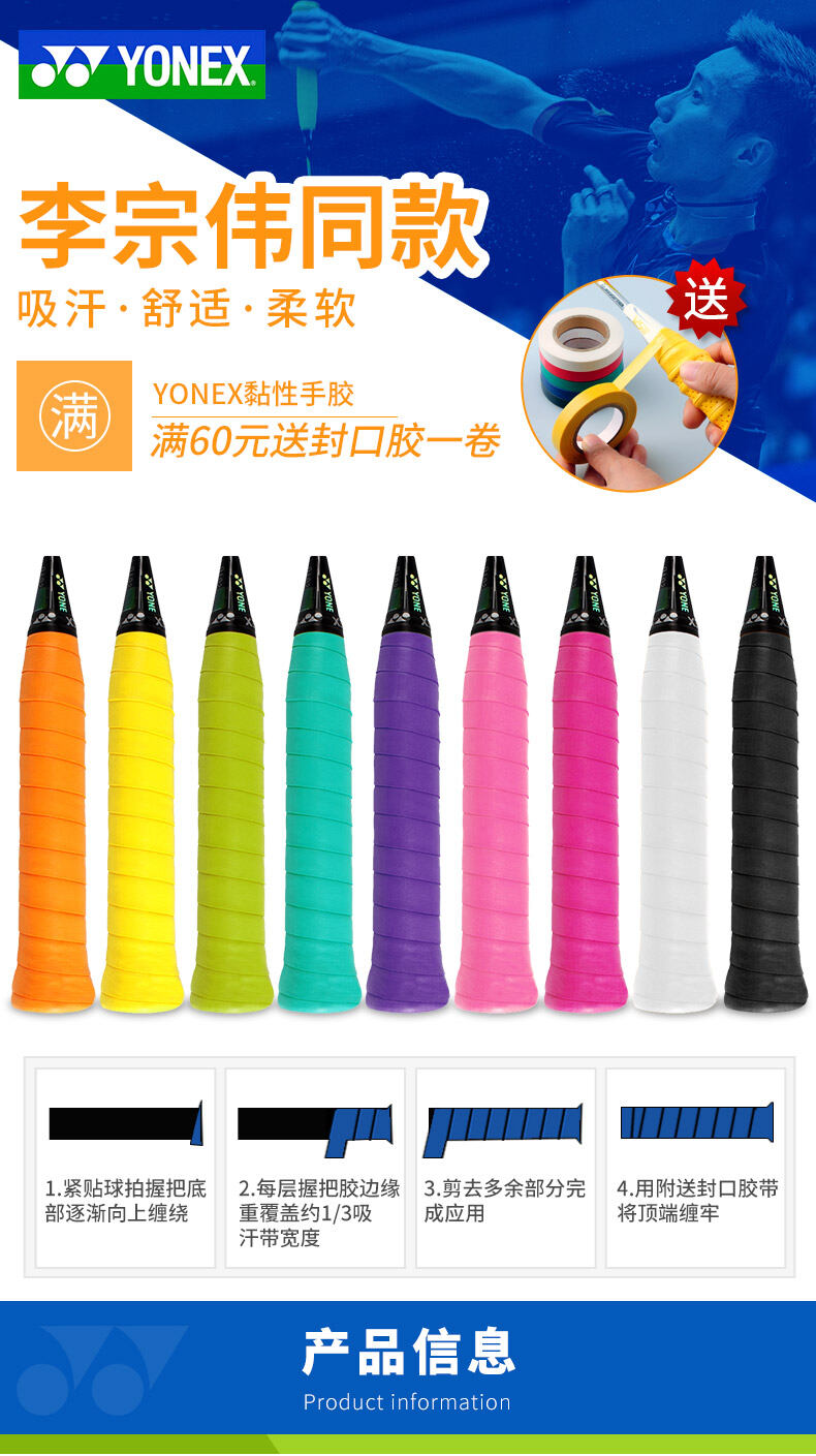 3-Pack Yonex Badminton Racket Hand Glue Ac102 Slingshot Fishing Rod YY Sticky Non-Slip Sweat Absorbing