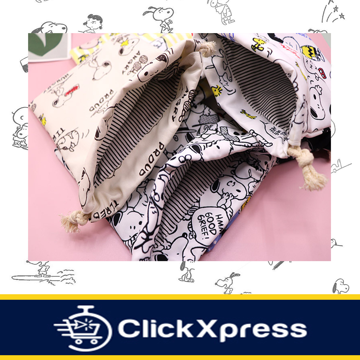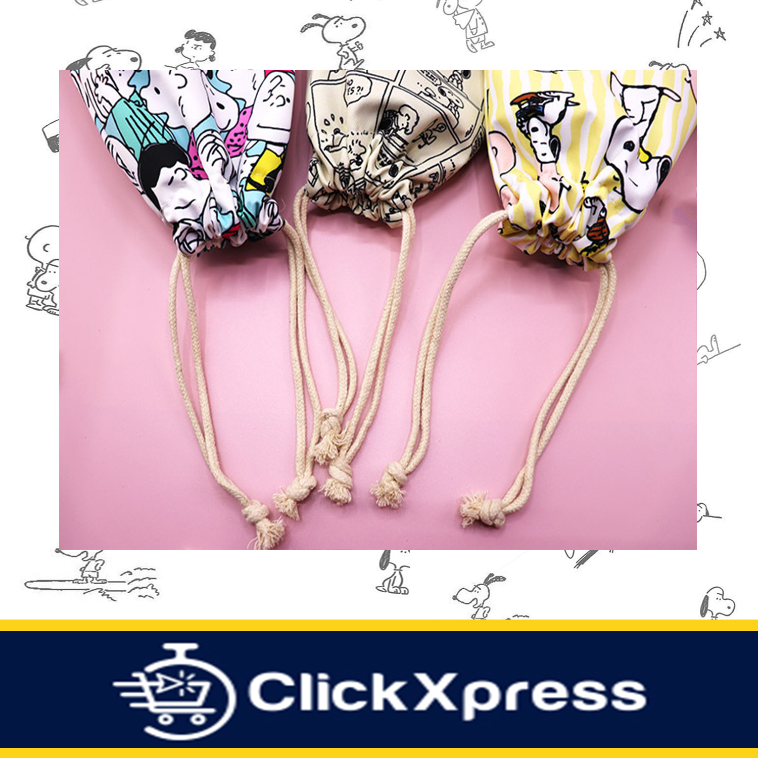 ClickXpress Singapore ?? | Drawstring Bag / Pouch-Harajuku Snoopy Style/Classic Snoopy/Charlie+Friends+Snoopy