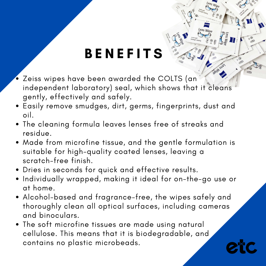 Made from microfine tissue, and the gentle formulation is suitable for high-quality coated lenses, leaving a scratch-free finish.