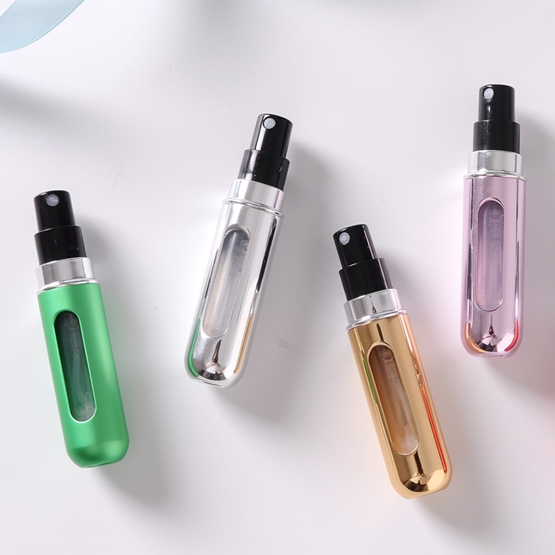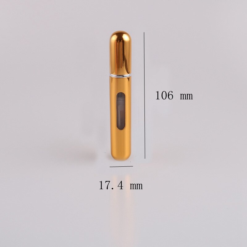Multicolor 5ml Portable Practical Pump Refillable Spray Bottle Travel Empty Perfume Bottle Atomizer Aluminum Liquid Container Description: The refillable travel perfume bottle is replenished directly from a standard perfume bottle in seconds. The innovative "pump fill" system perfectly transfers your fragrance without spilling or damaging exposure to the air! Feature: 1. Small size, easy to carry and store. 2. In a clean bottle, it's easy to see how much perfume you have left. 3. Very easy to use and can be refilled in a few seconds. 4. Easy and convenient - Just press the bottom on your favorite perfume and continue clicking until you refit it. 5. Perfectly store some of your favorite perfume/aftershave/makeup remover in a smaller container instead of taking the whole bottle with you on vacation. Specification: Product size: 8.1*1.7*1.7cm / 3.2*0.7*0.7in Material: aluminum (bottle body) + PP(inner bottle) Product capacity: 5ml Product weight: 15g Product color: Black, Blue, Bright Blue, Bright Gold, Bright Pink, Bright Silver, Gold, Purple, Pink, Rose Red Use: 1. Take off your perfume bottle. 2. Put the bottoms of the perfume bottles on top of our perfume bottles. 3. Enjoy your mini spray bottle. Note: Due to the different monitor and light effect, the actual color of the item might be slightly different from the color showed on the pictures. Thank you! Please allow 1-3mm measuring deviation due to manual measurement.