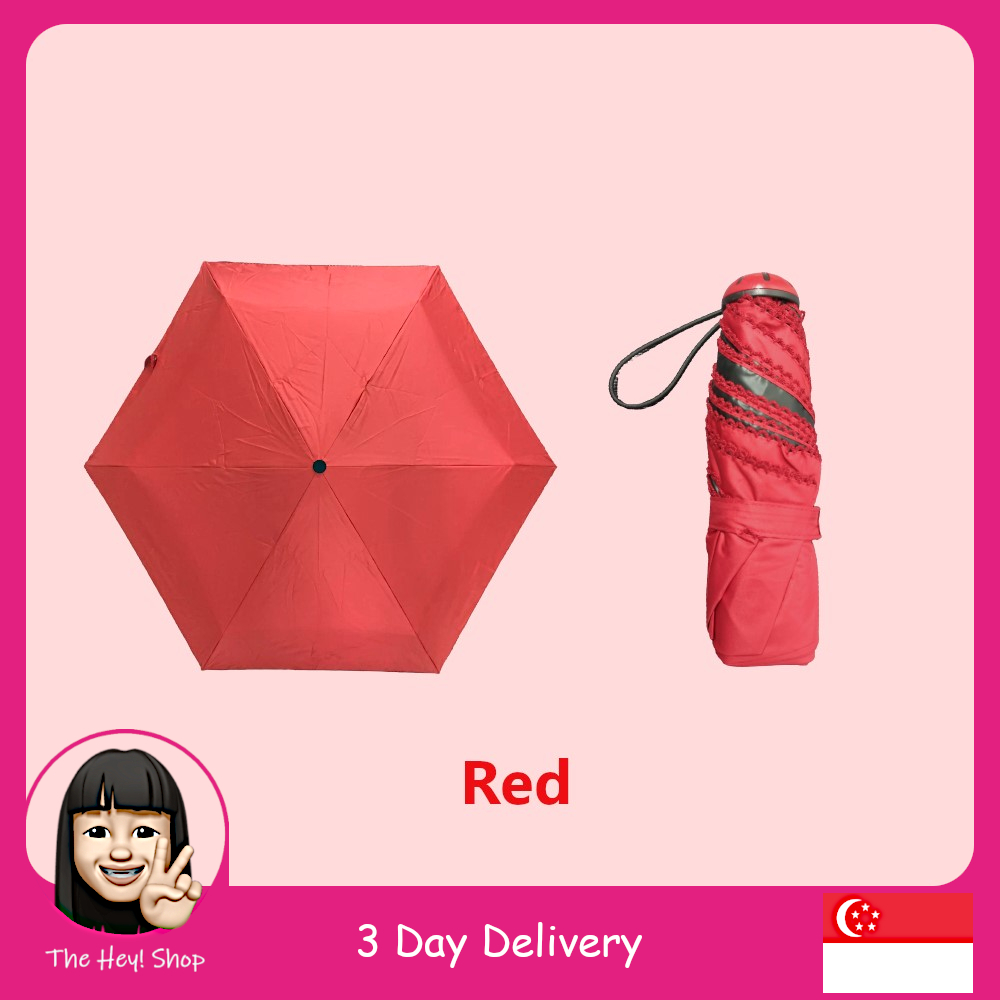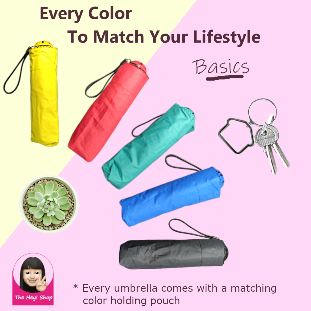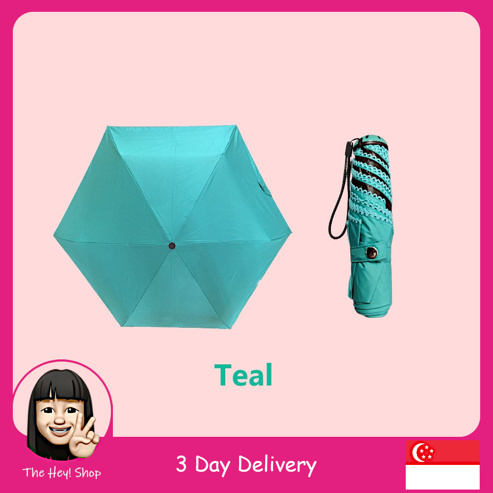 Mini Small Foldable Umbrella | UV UPF 50+ | Fast Drying | Manual Open and Close | Small Lightweight (175g-195g) | Designed in Singapore for Women (Ladies)