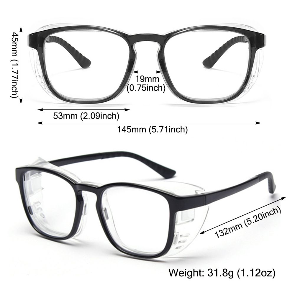 * HIGH-QUALITY AND SAFE MATERIAL: The safety glasses are made of polycarbonate lens and TR90 frame, lightweight, drop-resistant, and impact-resistant, comfortable to wear. One-piece nose pads, ergonomically designed, relieve pressure on the bridge of the nose. In addition, a reinforced metal hinge is designed to prevent the loosening of screws and make the glasses more smooth, opening and closing.
