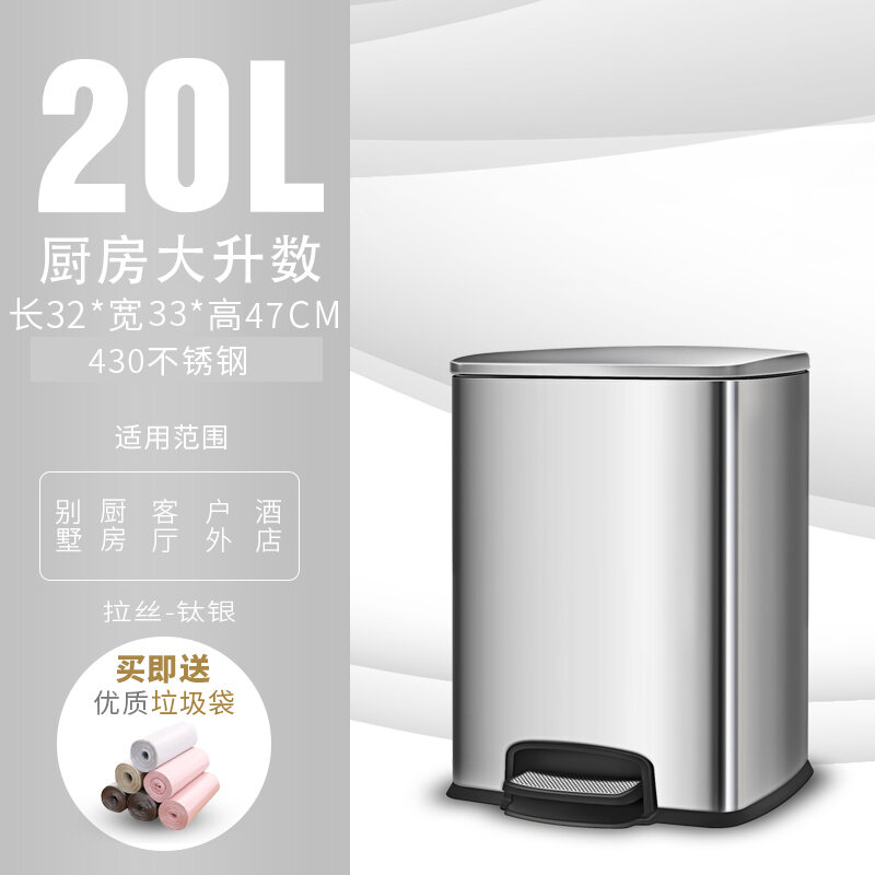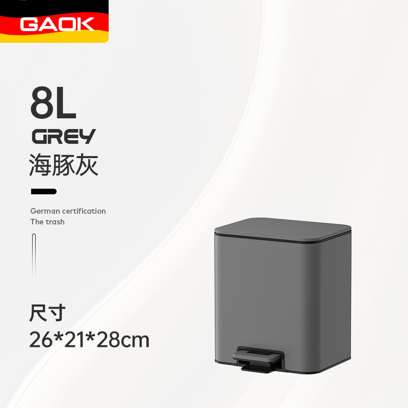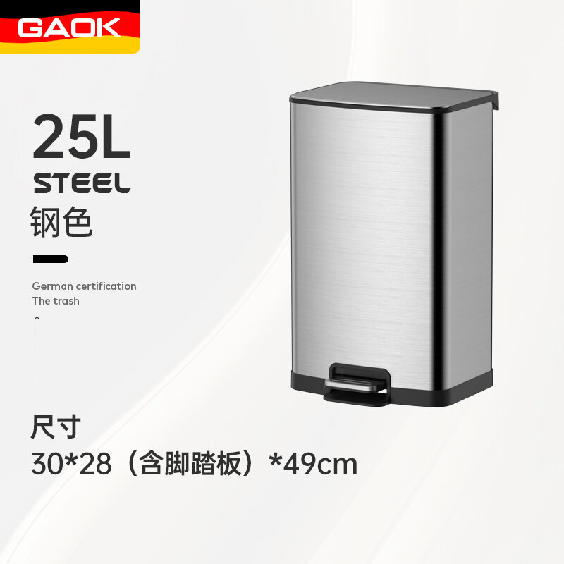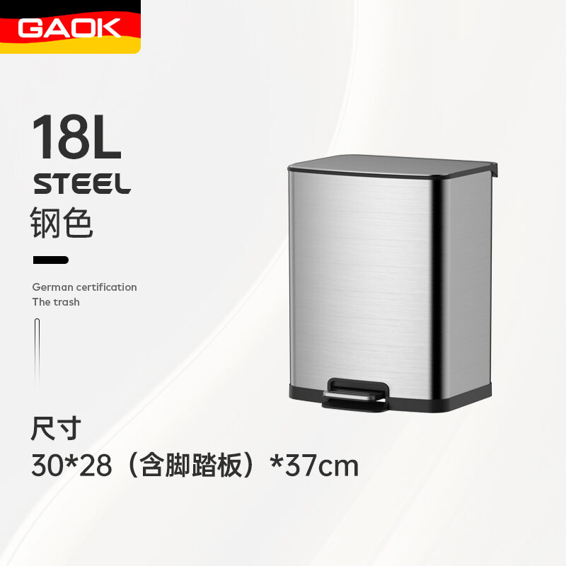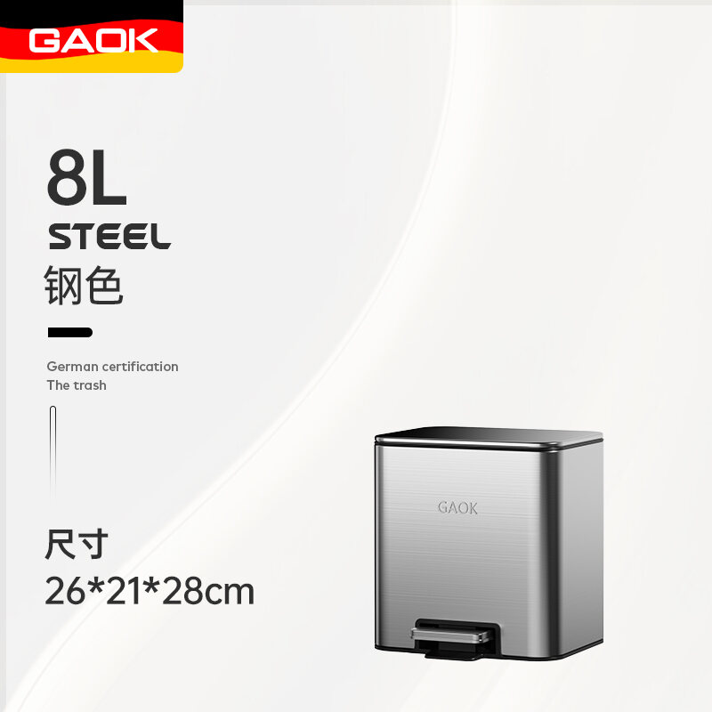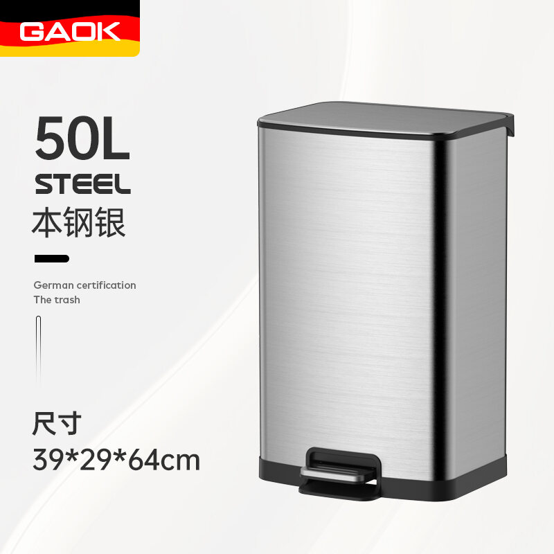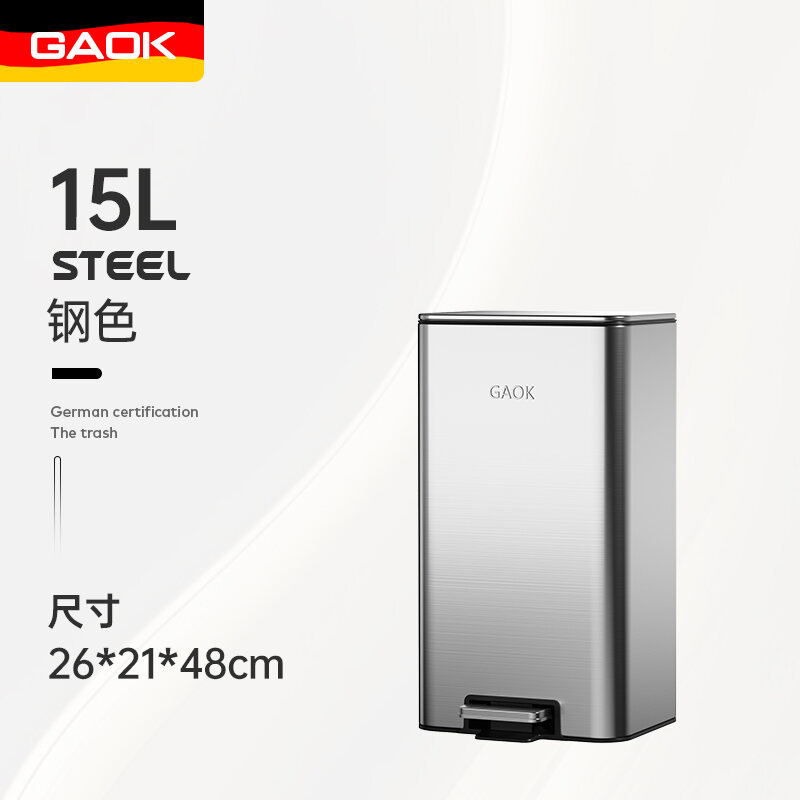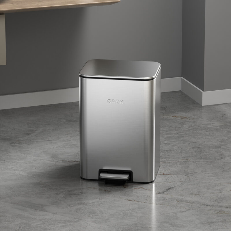 Gaok Kitchen Sanitary Bucket Stainless Steel Trash Can with Lid Household Pedal Living Room Bathroom Light Luxury Good-looking