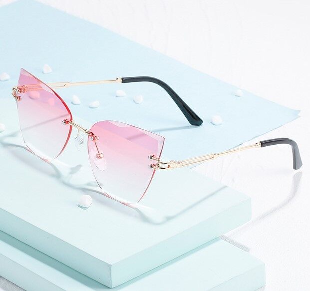 Cabecade 【high quality】2022 fashion cat eye sunglasses men and women gradient color ocean sunglasses INS net red with the same metal temples UV400