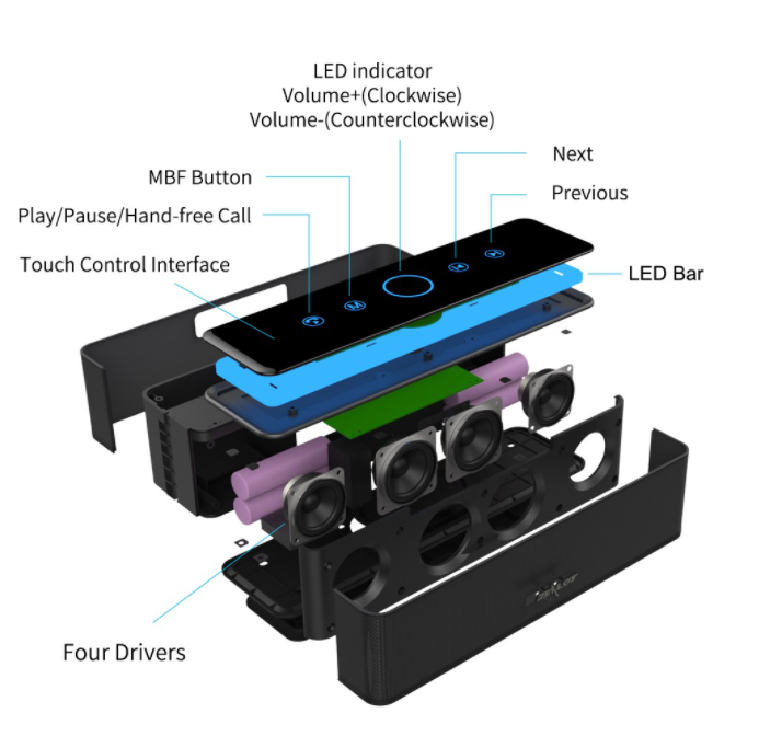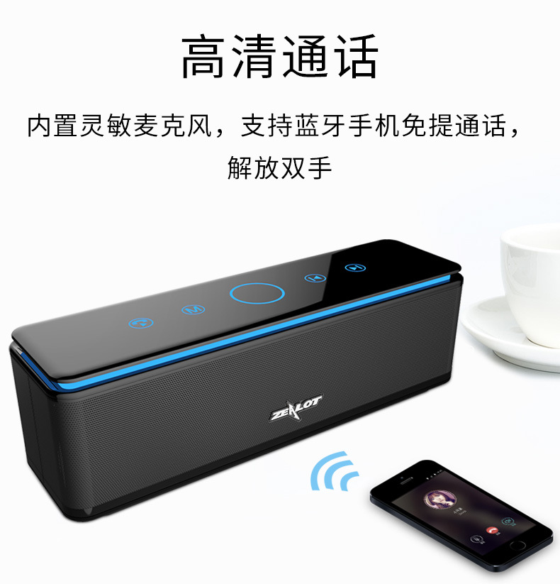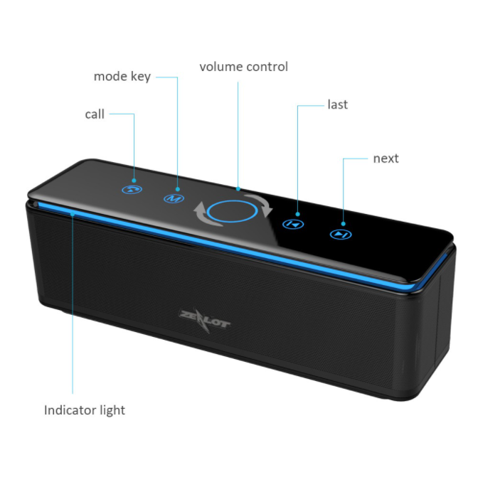ZEALOT S7 Touch Control Bluetooth Wireless Speakers 4 Drivers Power Bank with Built-in 10000mAh Battery,LED Bar,Aux Audio/TF Card Supported