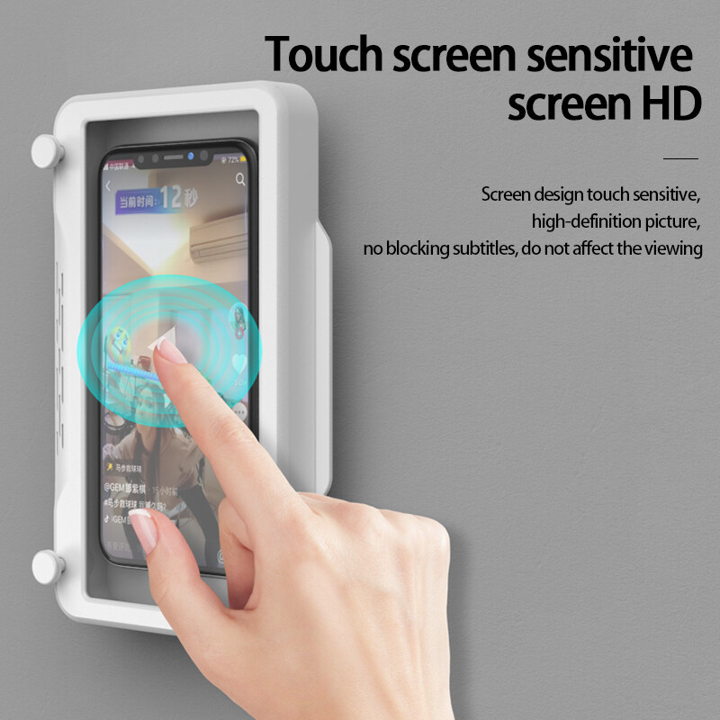 Waterproof phone protector In the shower No fogging shower phone holder is a game changer Amazing Adhesion for our shower phone holder waterproof for bathroom kitchen or anywhere! High Sensitivity Touch Screen: Functional touch screen cover, scroll through your social media or listen to your favorite podcasts With a 60° open angle, there is plenty of room to slide your smartphone into the case This phone case for the bathroom is 100% waterproof once installed properly on your wall