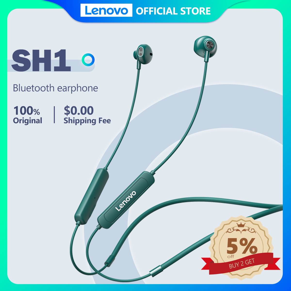 Lenovo SH1 Neckband Sports Bluetooth 5.0 Earphone True Wireless Earbuds Headset Handfree 5.0 IPX5 Long Battery TWS Headset with mic audio earpieces Headphone Microphone Audio
