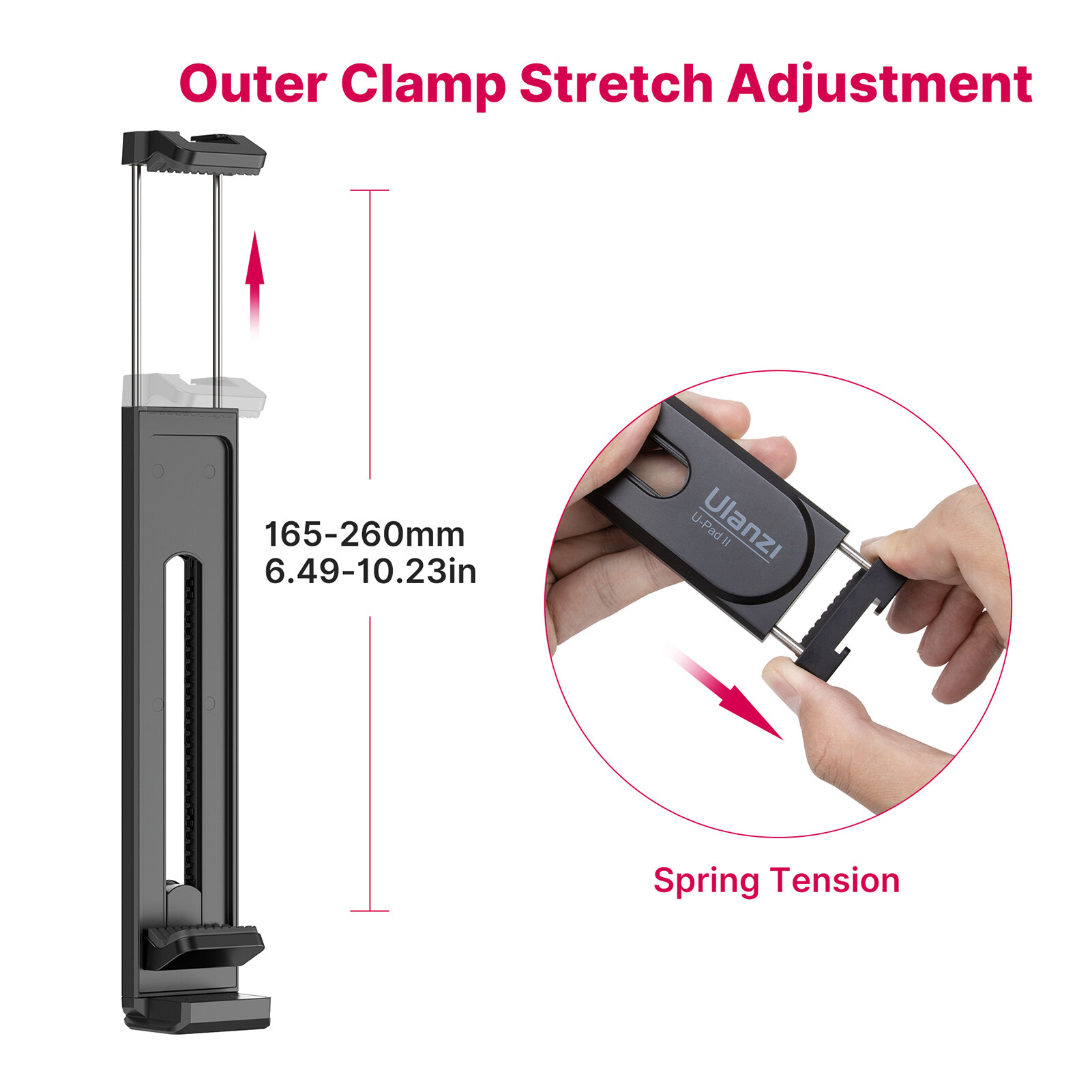 Universal Phone and Tablet Holder: Supports 6.5cm-26cm/ 2.55in-10.23in adjustable clamp width, compatible with all 3.93in - 12.9in smartphones and tablets.