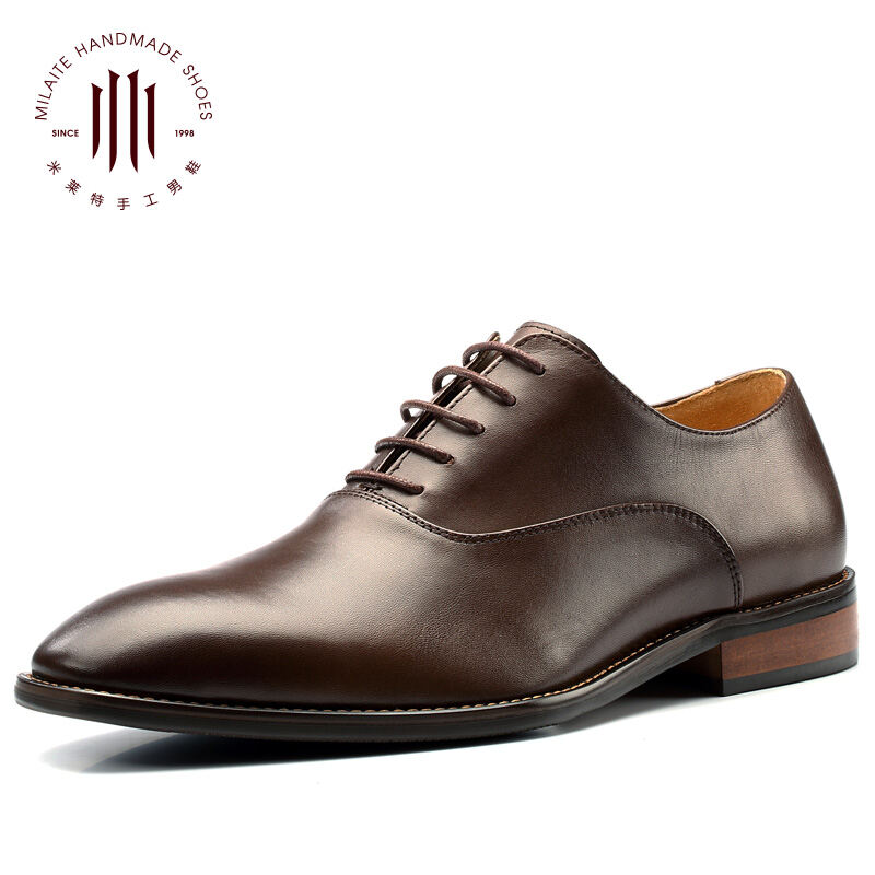 Handmade Business Formal Leather Shoes Men's British Pointed Italian Suit Derby Shoes Genuine Leather Small Men's Shoes