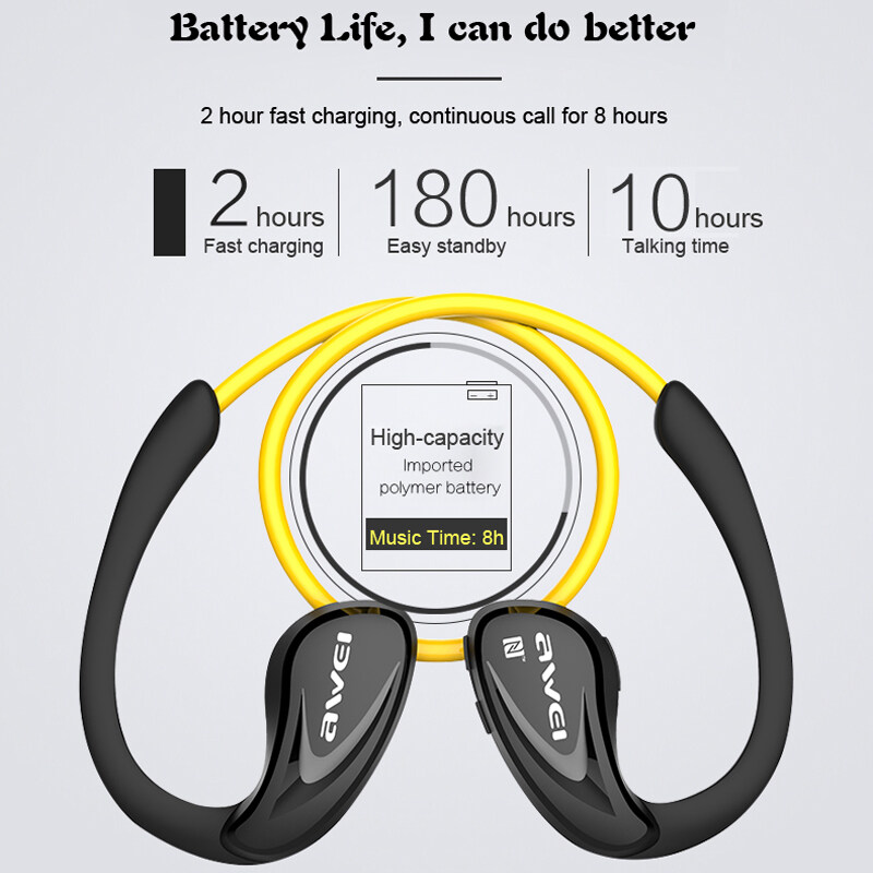 Awei A880BL Neck Hanging Sport Headphone In-ear Bluetooth Wireless Headset Sweat-proof IPX4 Waterproof Sports Wireless Earbuds Built-in Mic Compatible Bluetooth earphone for All Bluetooth mobiles