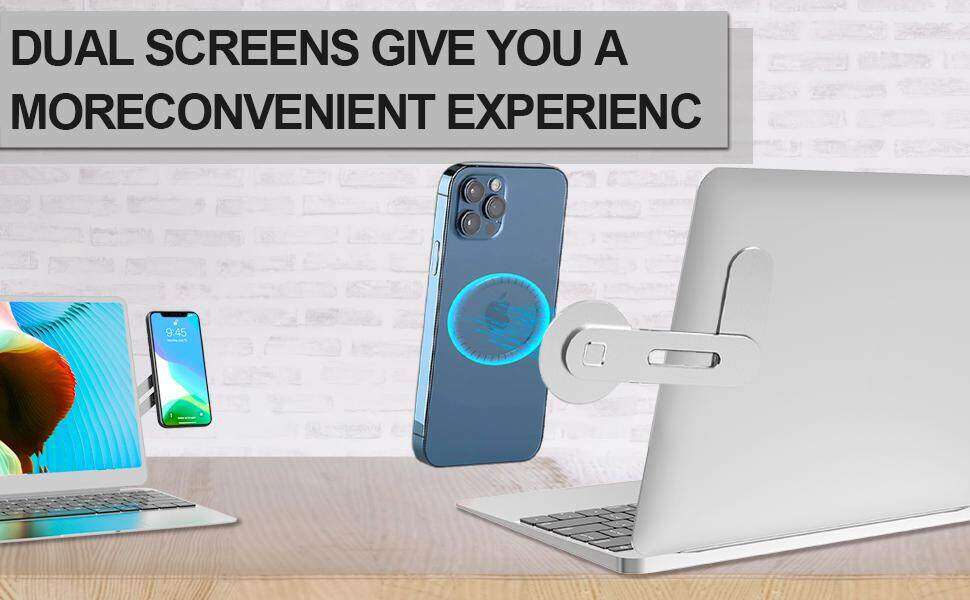 【HIGH MAGNETISM AND STABILITY】Phone holder for computer monitor use magnetic design, which can firmly adsorb the mobile phone next to the laptop or display. It is very simple to install, carry and use. Easily perform multiple tasks between phone and laptop without picking up the phone.