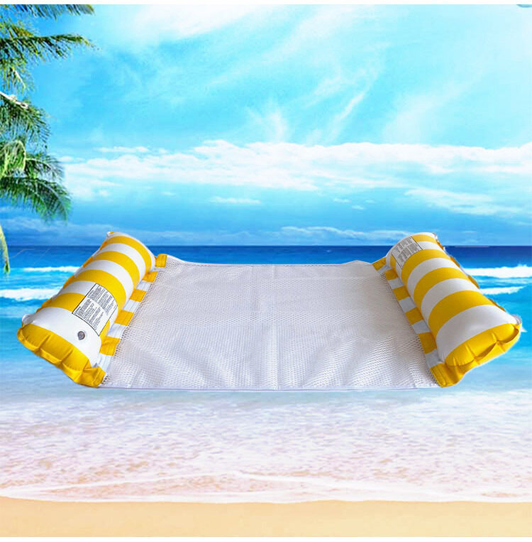 Notice:Recommended for children under the guardianship of adults use.Due to the different monitor and light effect,the actual color maybe a slight different from the picture color.Please allow 2-3cm differs due to manual measurement.Included:1 x Inflatable Water Hammock