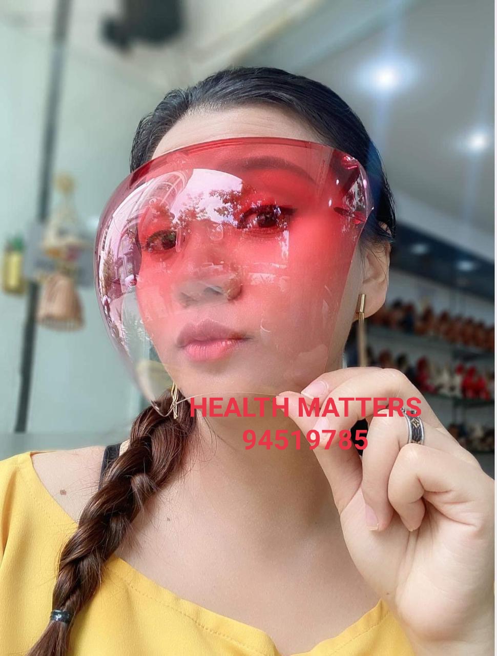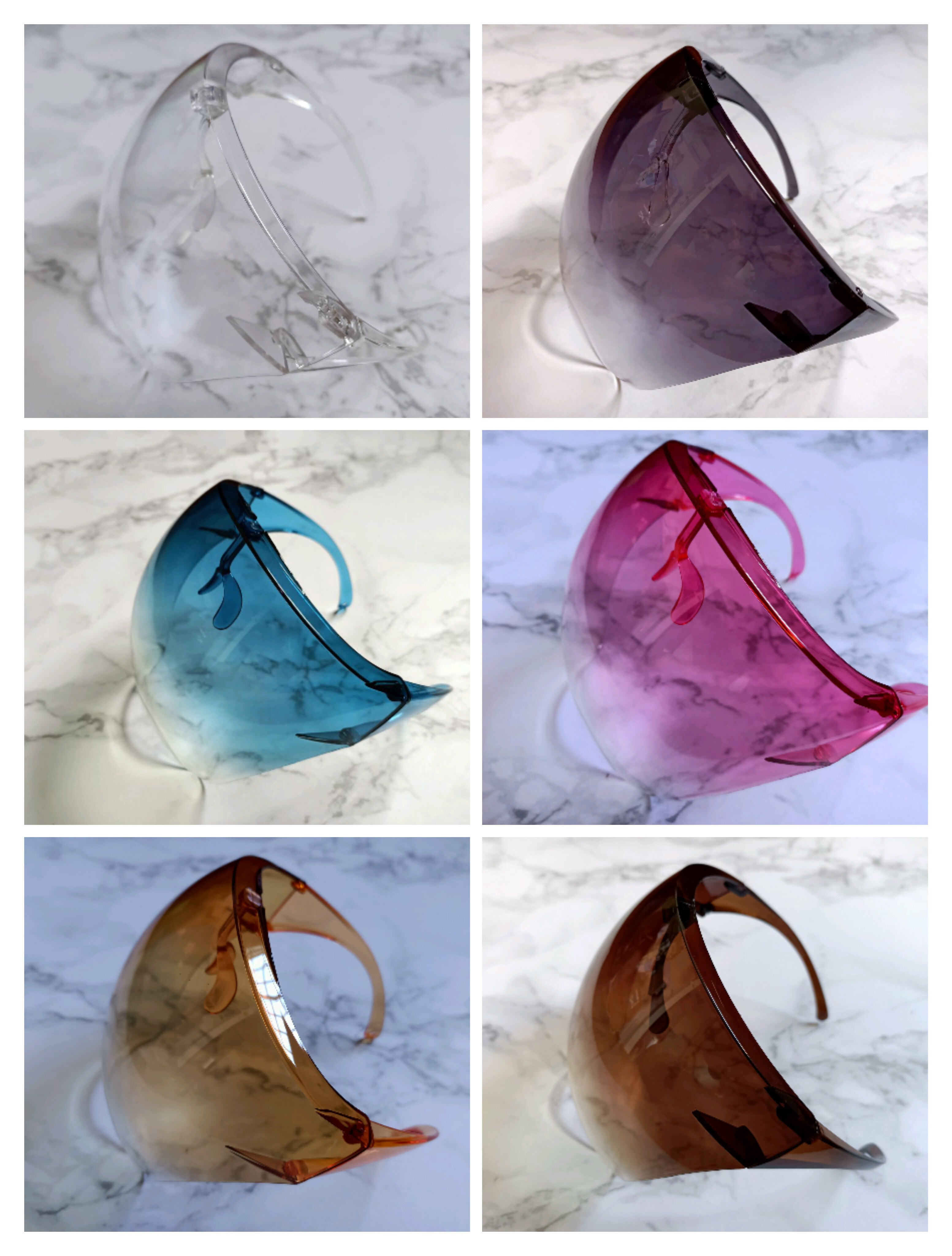 Face shield acrylic REUSABLE : transparent, brown, red, blue, black, dark brown. No dizziness. Super trendy.