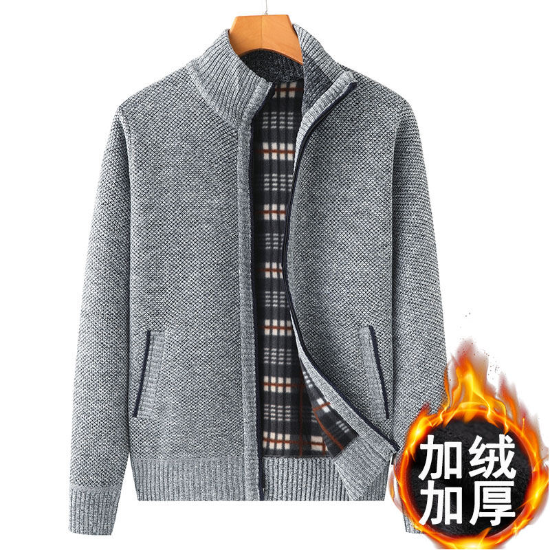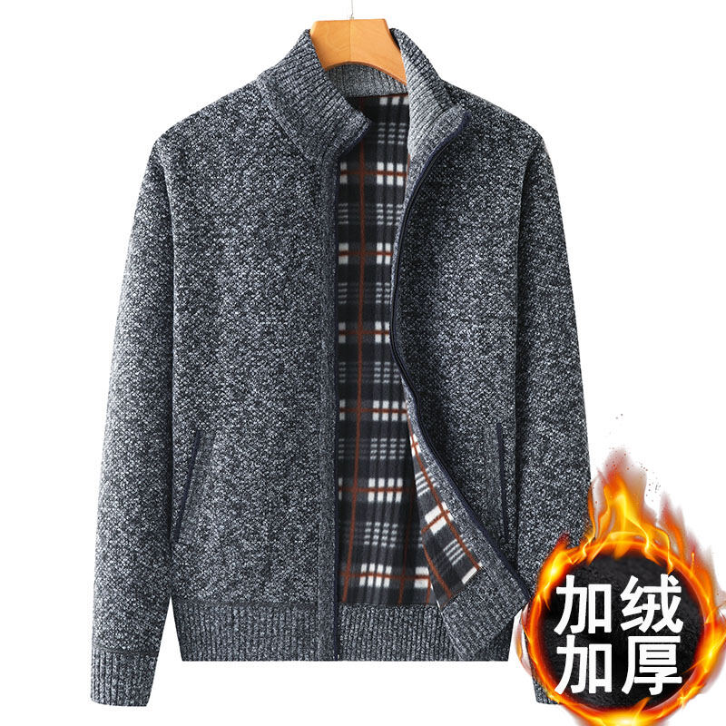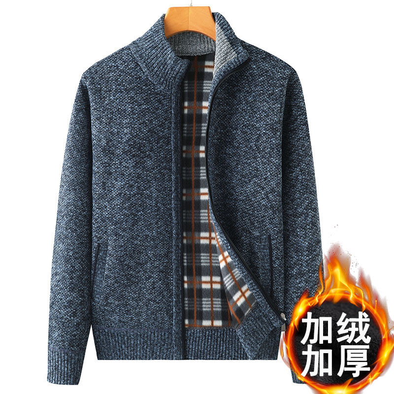 Winter Fleece-Lined Thickened Coat Cardigan Middle-Aged and Elderly Men's Sweater Loose Large Size Daddy Clothes Warm Sweater Grandpa
