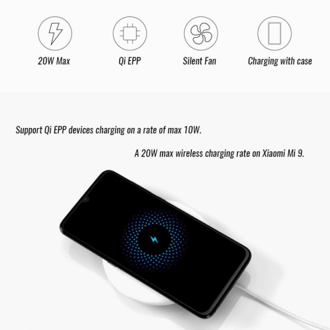 Xiaomi Mi Wireless Fast Charger 20W EU (Qi Compatible) for fast charging on iphone samsung xiaomi and more smartphones