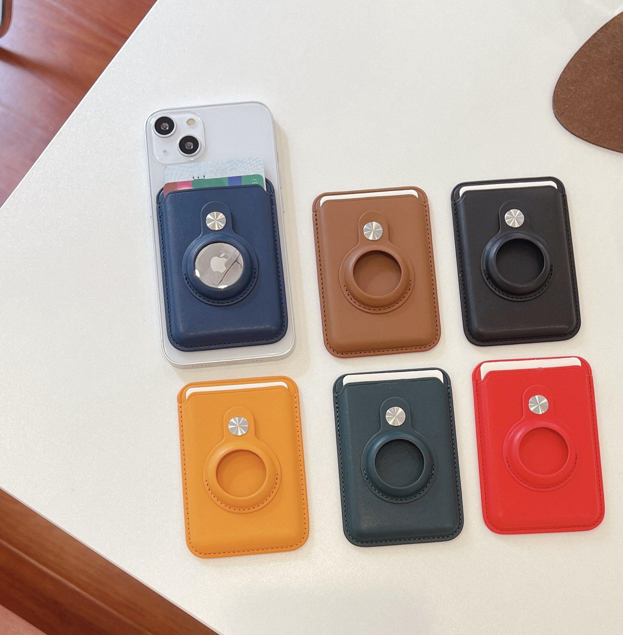 HOCE MagSafe Leather Card Slot Bag For iPhone 13 12 Pro Max 13 12 With Airtag Bag Magnetic Card Holder With Apple Airtags Case Anti-lost Cover