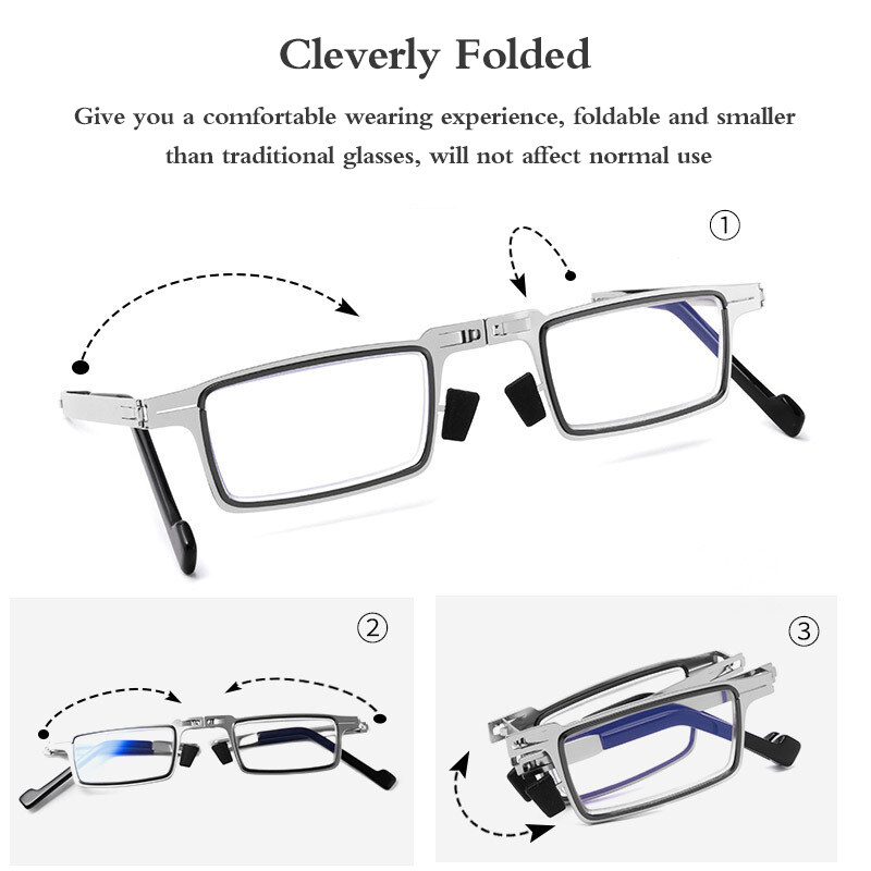 Anti Blue Reading Glasses For Men Women Square Foldable Eyeglasses Frame Presbyopic Glasses Diopter With Grade +1.0(+100) +1.25(+125) +1.5(+150) +1.75(+175) +2.0(+200) +2.25(+225) +2.5(+250) +3.0(+300