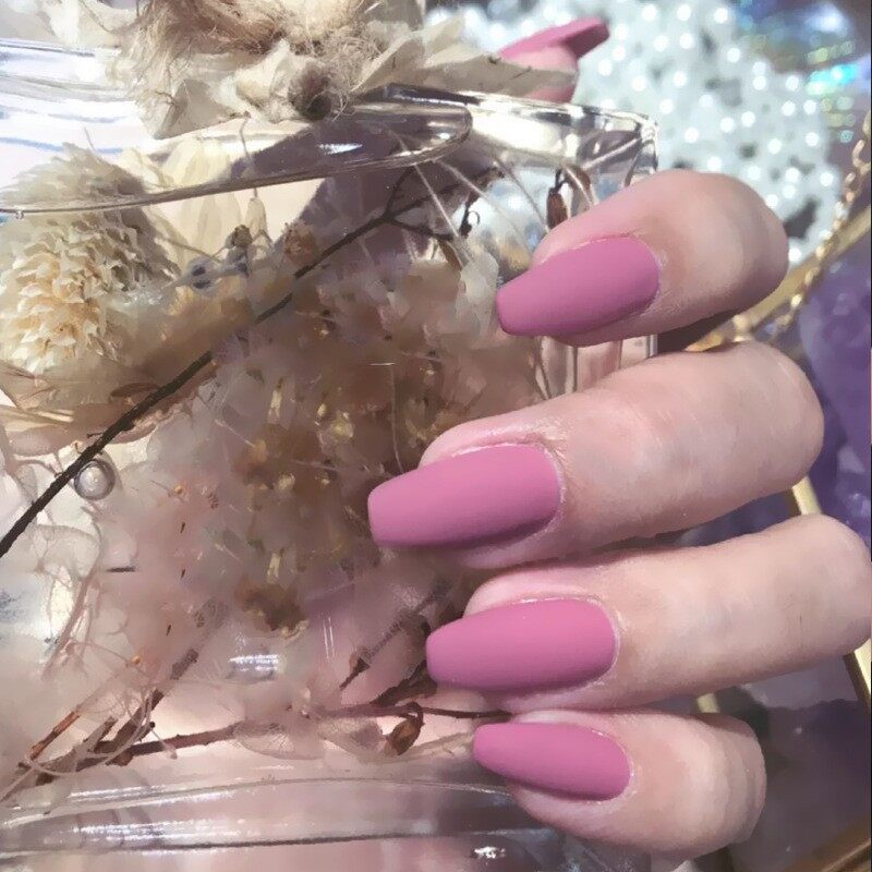 【With glue】24pcs fake nails matte matte fashion nail art finger fake nail art