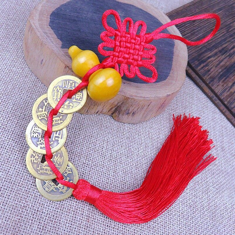 *Five ancient copper coins were knitted b hand with Chinese knots, gourds