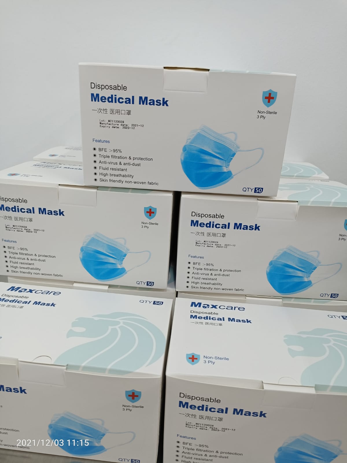 MAXCARE 3 Ply Medical Grade Blue Masks 100 Percent Made in Singapore