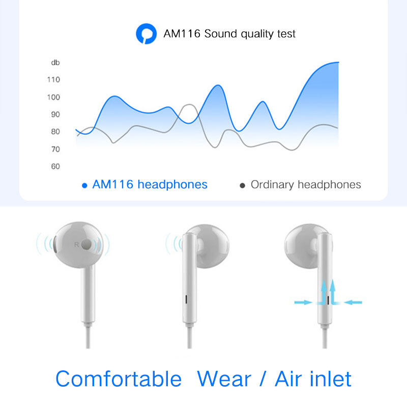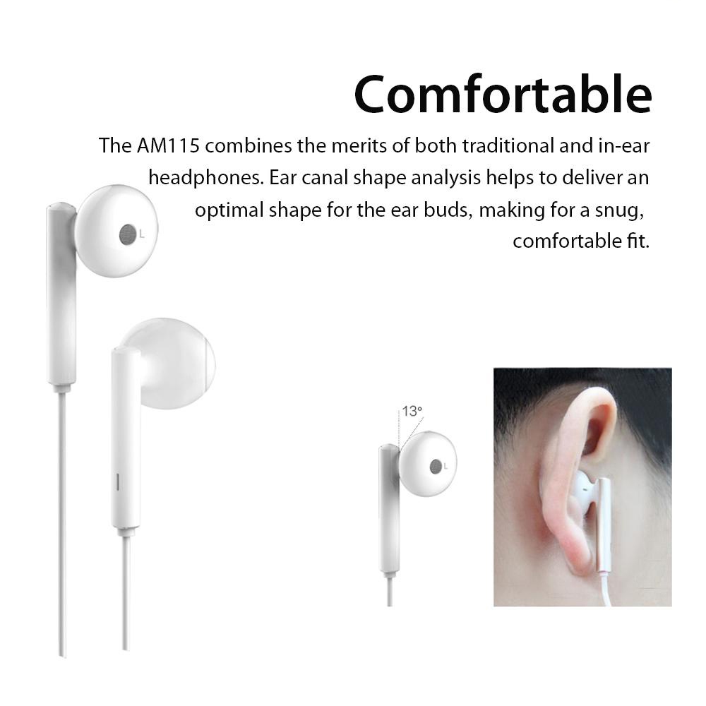 HUAWEI Headset Original AM115 Earphone Wired Half In-Ear Earphones | 3.5mm Edition Headphone | 3-Button With Mic Volume Control | For P30 P20 P10 Mate10 Nova4 4e 3 3i 2 2I Y9 Y Max Mobile Phones Table