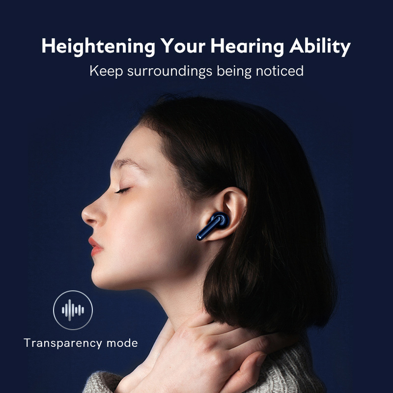 Transparent mode enables you to notice ambient condition. ​Safer for drivers; ​Chat to friends without taking off earbuds;