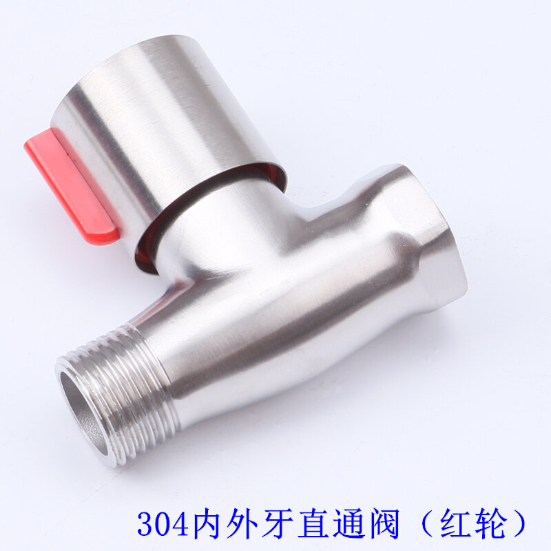 304 Stainless Steel Direct Valve 4 Points 6 Points Open-Mounted Pipe Double Internal and External Wire Thread Straight Angle Valve DN15 All Steel Fast Switch