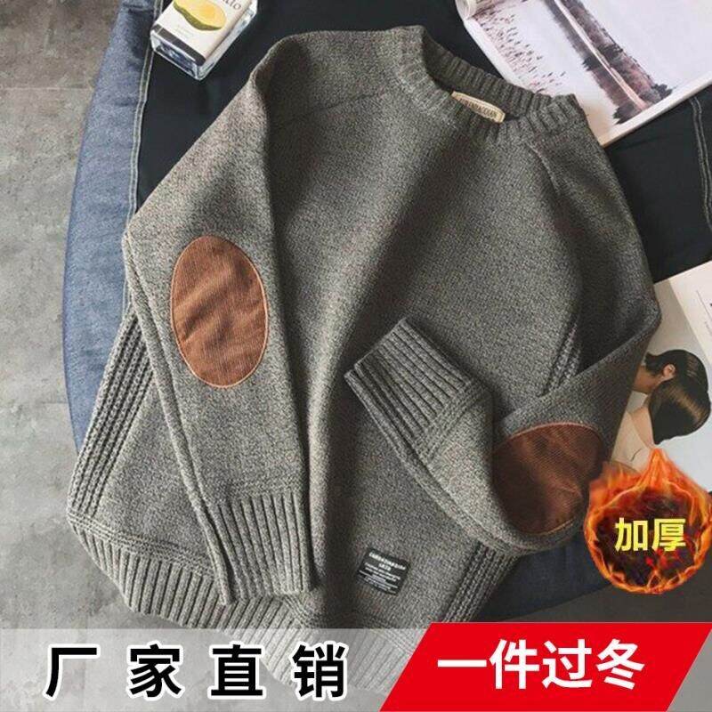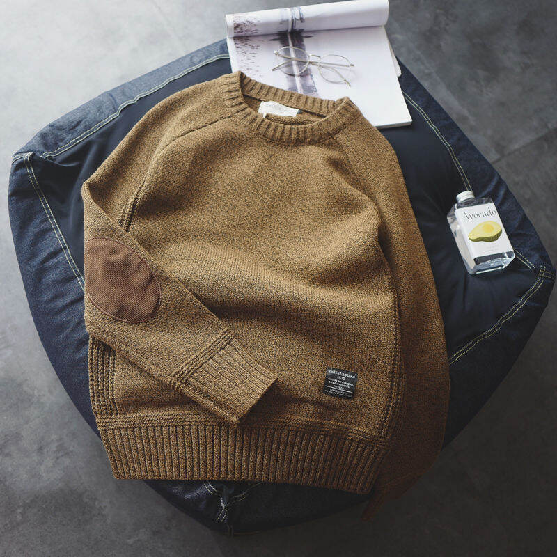 Japanese Retro Pullover Men's Preppy Style Patch Stitching Contrast Color Thickened round Neck Sweater Men's Fashion Sweater