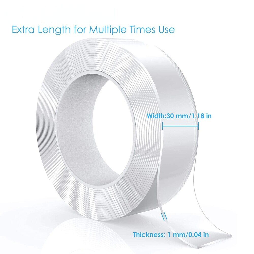 • 【EASY TO USE】- Size: length 1m(3.28FT)/ 2m/ 3m(9.85FT) / 5m(16.5FT) ,width 20mm / 30mm(1.18in) ,thickness 1mm(0.039in) /. This double-sided tape will stick to almost anything with a smooth surface and is easy to remove without damaging the surface, so you can stick anything anywhere.