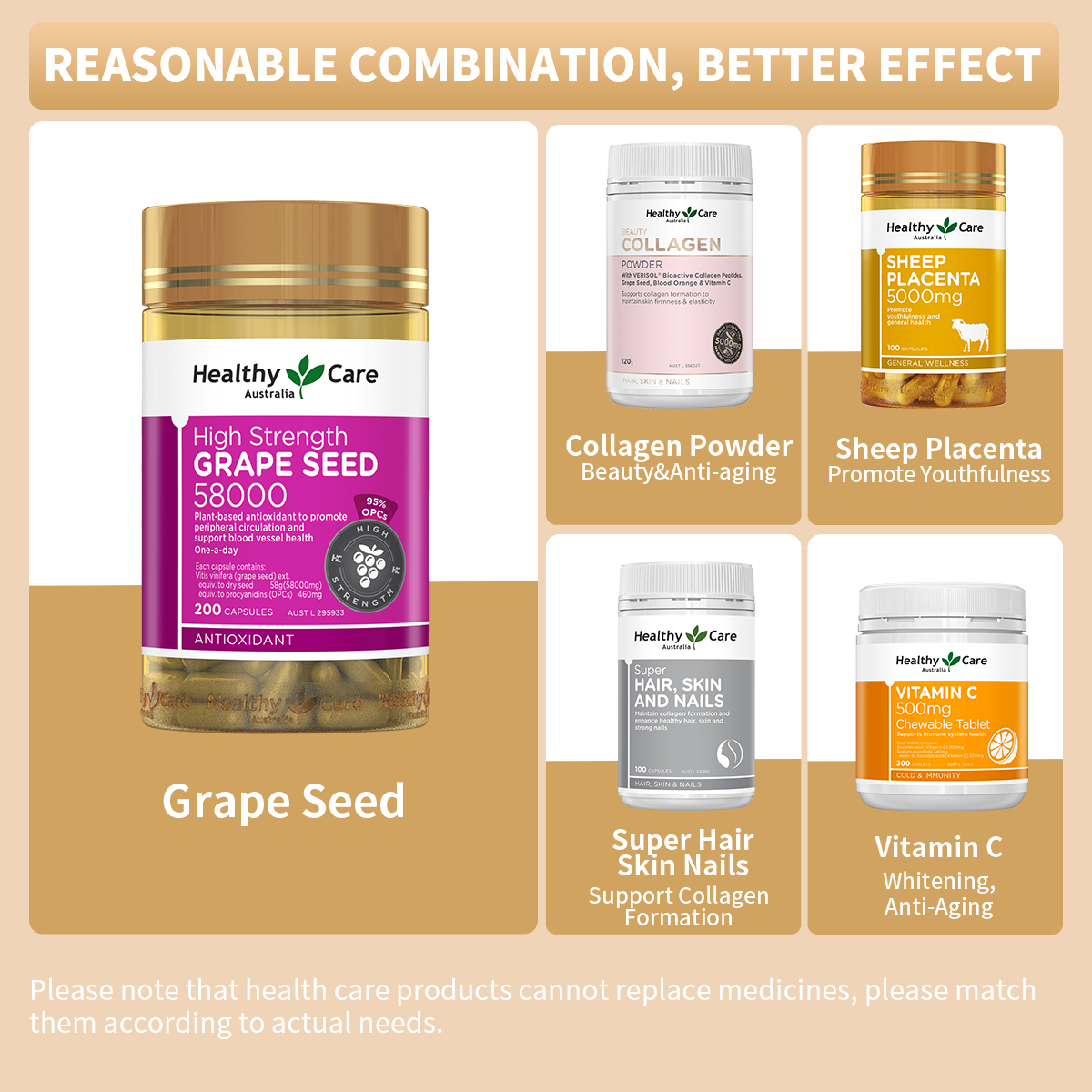 Exp:May-2025 / Healthy Care High Strength GrapeSeed Anti-oxidation & Anti-age 58000 200 Capsules